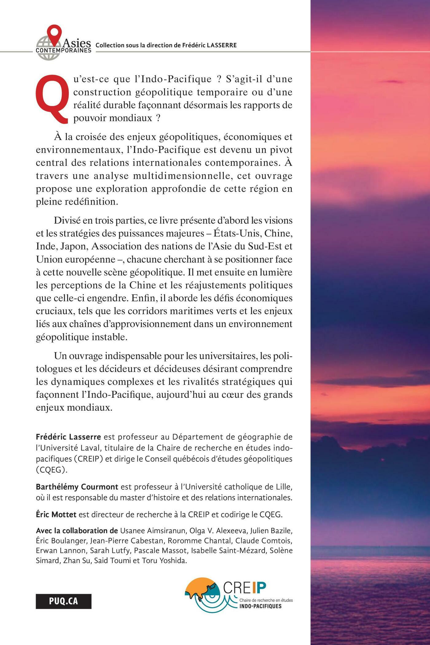 Un ouvrage indispensable pour les universitaires, les politologues et les décideurs et décideuses désirant comprendre les dynamiques complexes et les rivalités stratégiques qui façonnent l’Indo-Pacifique, aujourd’hui au cœur des grands enjeux mondiaux.