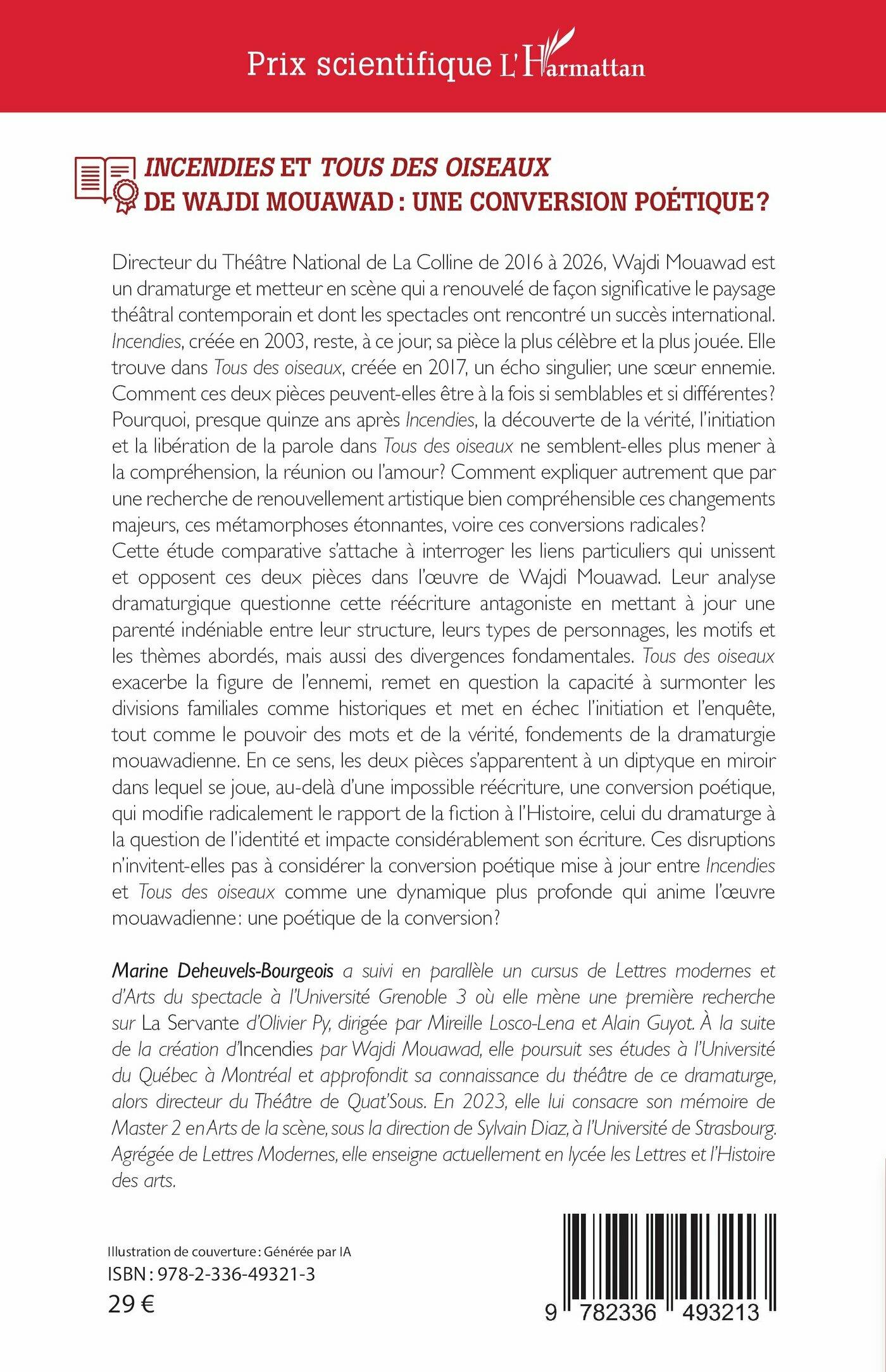Directeur du Théâtre National de La Colline de 2016 à 2026, Wajdi Mouawad est un dramaturge et metteur en scène qui a renouvelé de façon significative le paysage théâtral contemporain et dont les spectacles ont rencontré un succès international. Incendies, créée en 2003, reste, à ce jour, sa pièce la plus célèbre et la plus jouée. Elle trouve dans Tous des oiseaux, créée en 2017, un écho singulier, une sœur ennemie. Comment ces deux pièces peuvent-elles être à la fois si semblables et si différentes ? Pourquoi, presque quinze ans après Incendies, la découverte de la vérité, l’initiation et la libération de la parole dans Tous des oiseaux ne semblent-elles plus mener à la compréhension, la réunion ou l’amour ? Comment expliquer autrement que par une recherche de renouvellement artistique bien compréhensible ces changements majeurs, ces métamorphoses étonnantes, voire ces conversions radicales ?