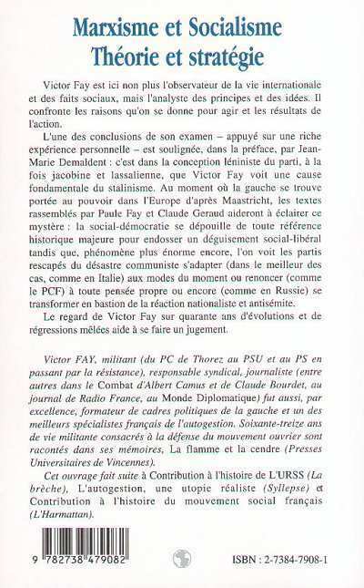 L'une des conclusions de son examen - appuyé sur une riche expérience personnelle - est soulignée, dans la préface, par JeanMarie Demaldent : c'est dans la conception léniniste du parti, à la fois jacobine et lassalienne, que Victor Fay voit une cause fondamentale du stalinisme. Au moment où la gauche se trouve portée au pouvoir dans l'Europe d'après Maastricht, les textes rassemblés par Paule Fay et Claude Geraud aideront à éclairer ce mystère : la social-démocratie se dépouille de toute référence historique majeure pour endosser un déguisement social-libéral tandis que, phénomène plus énorme encore, l'on voit les partis rescapés du désastre communiste s'adapter (dans le meilleur des cas, comme en Italie) aux modes du moment ou renoncer (comme le PCF) à toute pensée propre ou encore (comme en Russie) se transformer en bastion de la réaction nationaliste et antisémite.