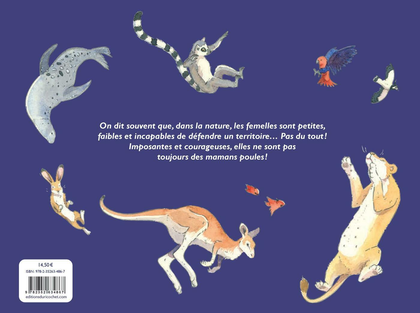 On entend souvent que les femelles sont plus petites, moins aptes à diriger et dépendantes des mâles pour leur survie. Pourtant, le règne animal raconte une toute autre histoire et bouscule ces idées reçues.Chez certaines espèces, elles brillent par leur force, leur ingéniosité et leur autorité. Les femelles autours des palombes et léopards des mers, par exemple, surpassent les mâles en taille ! Et même lorsqu'elles sont plus petites que leurs mâles, les éléphantes guident leurs clans avec sagesse, et les rat-taupes nus s’organisent autour d’une reine, comme les abeilles. Et que dire des lézardes à queue en fouet du Mexique et des tatous à neuf bandes, qui n'ont tout bonnement plus besoin des mâles pour se reproduire ?Cet album met en lumière les héroïnes du règne animal : des figures puissantes, flamboyantes et surprenantes et qui brisent les stéréotypes.