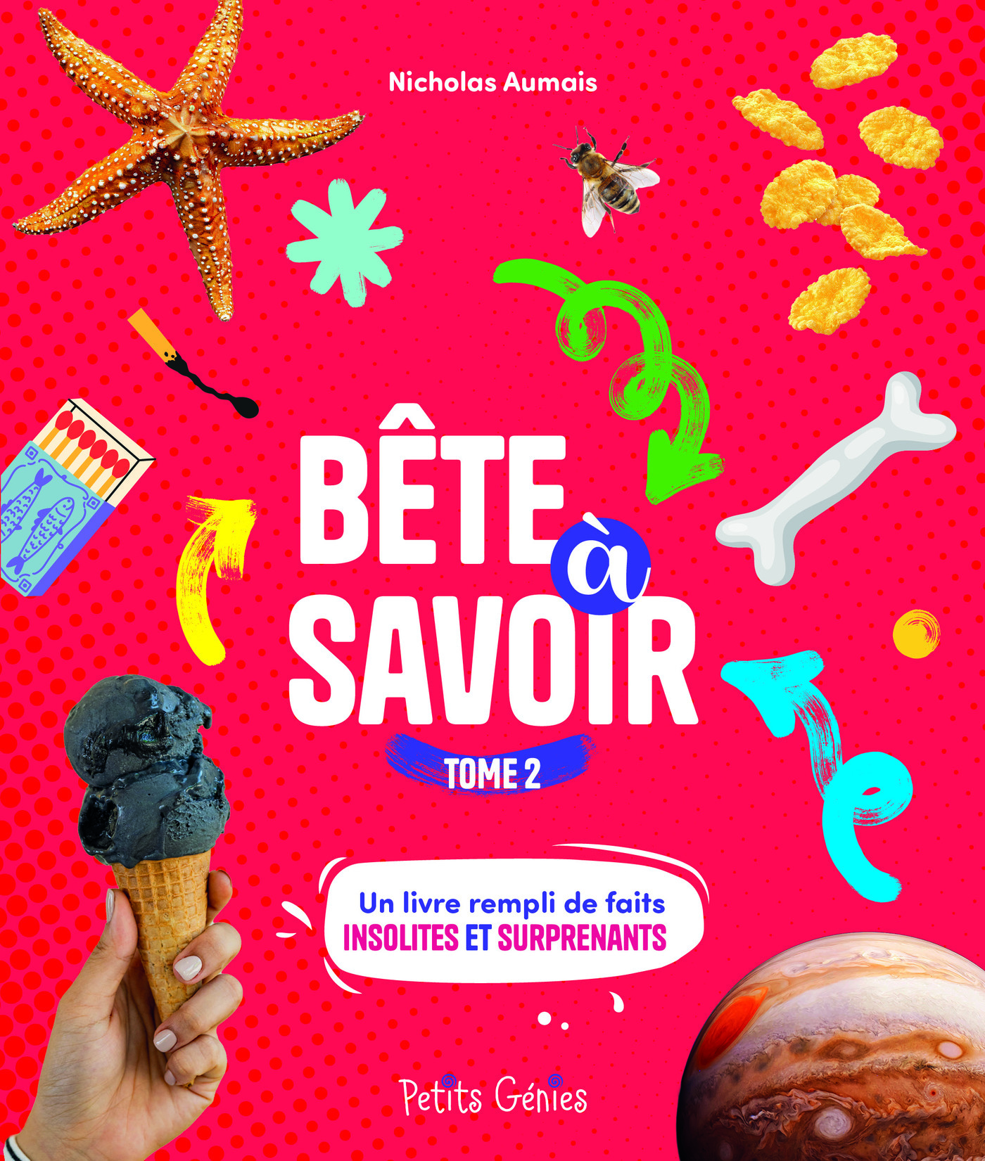 Tu penses vraiment tout savoir ? Savais-tu alors que tes oreilles s’allongent tout au long de ta vie ? Qu’une spécialité culinaire coréenne est composée d’un poulpe vivant ? Ou encore, qu’il existe une fleur dont l’odeur rappelle la chair en décomposition ? Non ? Dans Bête à savoir, tu découvriras 50 faits aussi intéressants que surprenants sur les thèmes de l’espace, du sport, des animaux, des inventions… et même, sur certains mystères paranormaux ! De quoi satisfaire ta curiosité avec des infos sérieuses (mais jamais ennuyeuses !), des anecdotes insolites, des records incroyables et tellement plus ! Vous aimerez :Les visuels dynamiques et colorés qui attisent la curiosité. Les textes courts, mais captivants, parfaits pour les lecteurs plus récalcitrants.La grande variété de sujets traités.