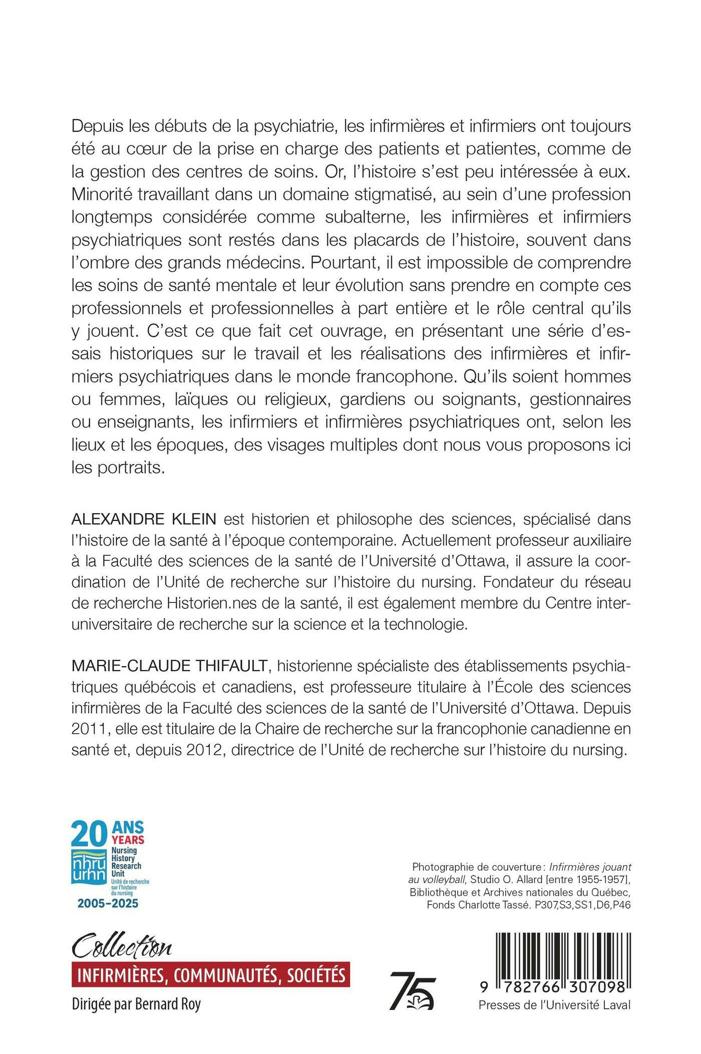 Depuis les débuts de la psychiatrie, les infirmières et infirmiers ont toujours été au cœur de la prise en charge des patients et patientes, comme de la gestion des centres de soins. Or, l’histoire s’est peu intéressée à eux. Minorité travaillant dans un domaine stigmatisé, au sein d’une profession longtemps considérée comme subalterne, les infirmières et infirmiers psychiatriques sont restés dans les placards de l’histoire, souvent dans l’ombre des grands médecins. Pourtant, il est impossible de comprendre les soins de santé mentale et leur évolution sans prendre en compte ces professionnels et professionnelles à part entière et le rôle central qu’ils y jouent. C’est ce que fait cet ouvrage, en présentant une série d’essais historiques sur le travail et les réalisations des infirmières et infirmiers psychiatriques dans le monde francophone. Qu’ils soient hommes ou femmes, laïques ou religieux, gardiens ou soignants, gestionnaires ou enseignants, les infirmiers et infirmières psychiatriques ont, selon les lieux et les époques, des visages multiples dont nous vous proposons ici les portraits.