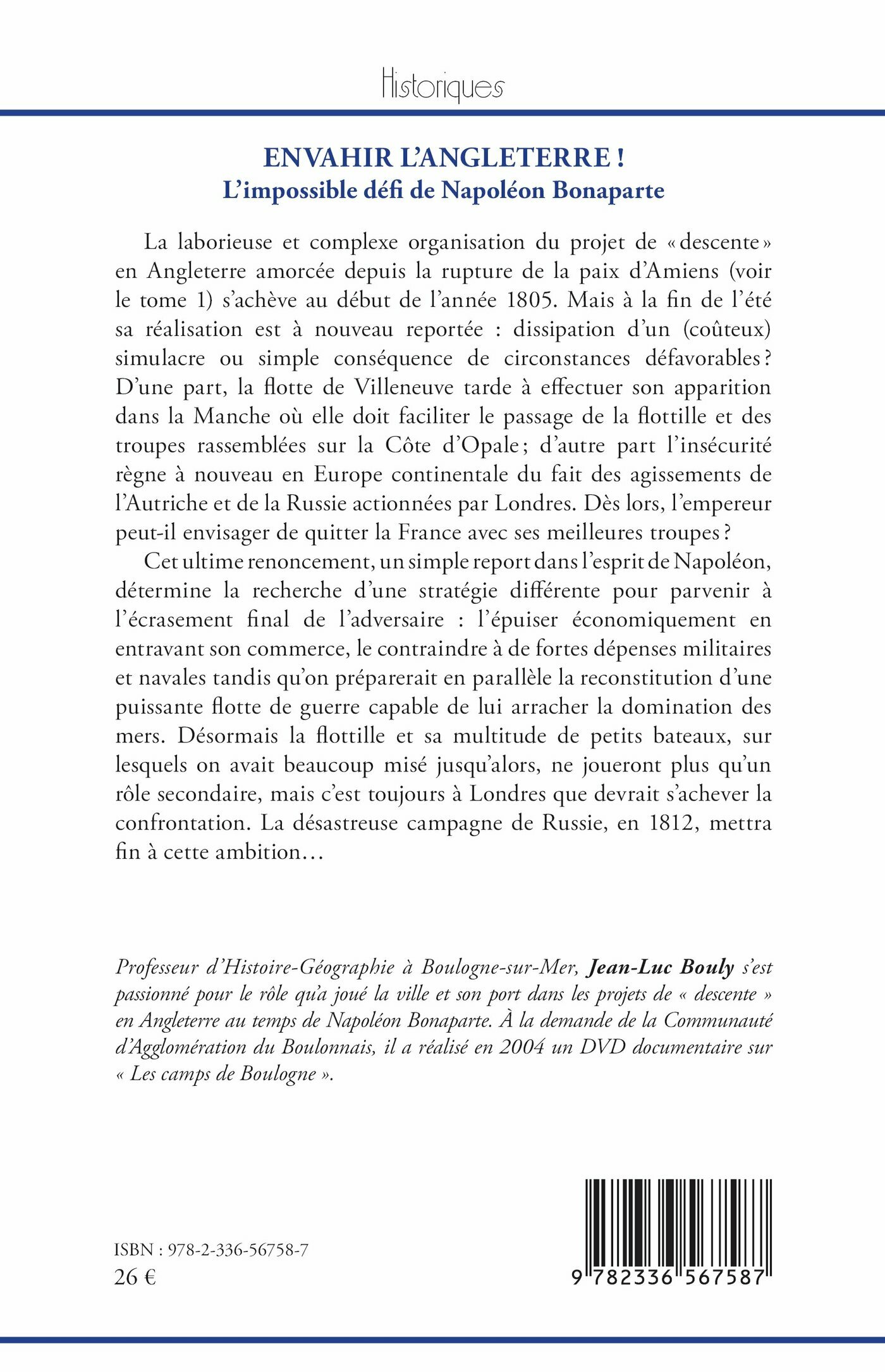 La laborieuse et complexe organisation du projet de « descente » en Angleterre amorcée depuis la rupture de la paix d’Amiens (voir le tome 1) s’achève au début de l’année 1805. Mais à la fin de l’été, sa réalisation est à nouveau reportée : dissipation d’un (coûteux) simulacre ou simple conséquence de circonstances défavorables ? D’une part, la flotte de Villeneuve tarde à effectuer son apparition dans la Manche où elle doit faciliter le passage de la flottille et des troupes rassemblées sur la Côte d’Opale ; d’autre part l’insécurité règne à nouveau en Europe continentale du fait des agissements de l’Autriche et de la Russie actionnées par Londres. Dès lors, l’empereur peut-il envisager de quitter la France avec ses meilleures troupes ?