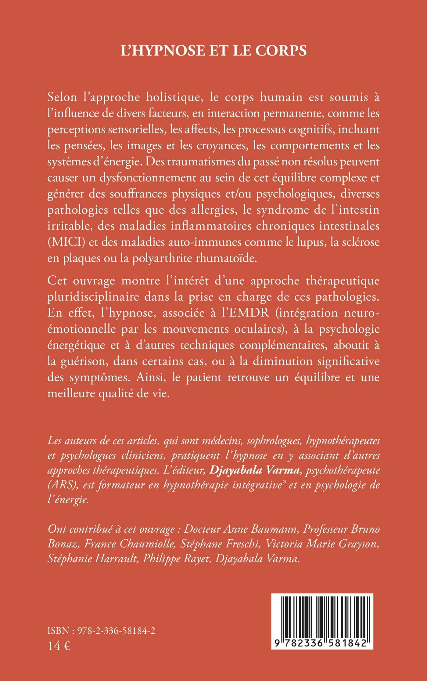 Cet ouvrage montre l’intérêt d’une approche thérapeutique pluridisciplinaire dans la prise en charge de ces pathologies. En effet, l’hypnose, associée à l’EMDR (intégration neuro-émotionnelle par les mouvements oculaires), à la psychologie énergétique et à d’autres techniques complémentaires, aboutit à la guérison, dans certains cas, ou à la diminution significative des symptômes. Ainsi, le patient retrouve un équilibre et une meilleure qualité de vie.