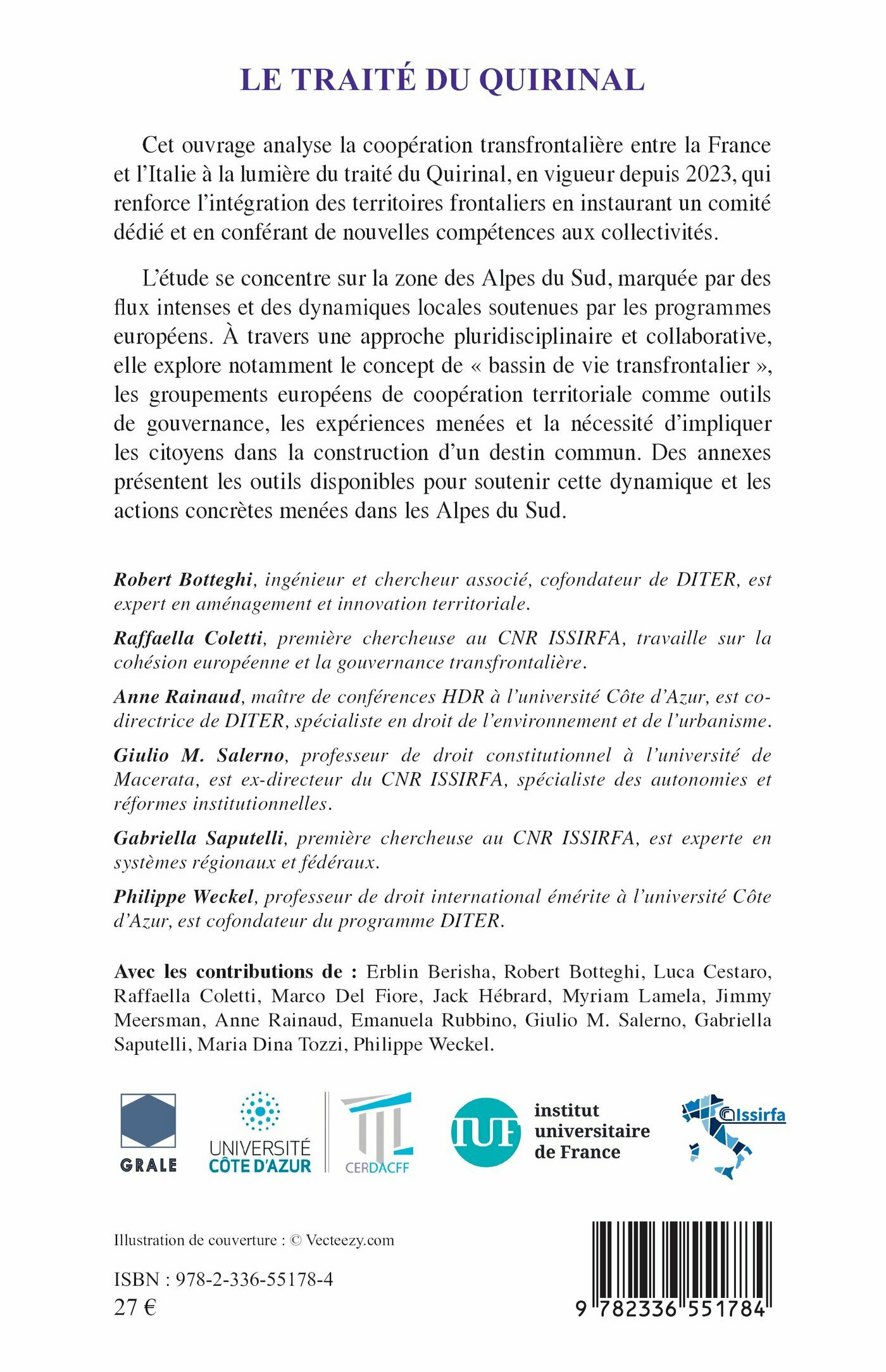 Cet ouvrage analyse la coopération transfrontalière entre la France et l’Italie à la lumière du traité du Quirinal, en vigueur depuis 2023, qui renforce l’intégration des territoires frontaliers en instaurant un comité dédié et en conférant de nouvelles compétences aux collectivités.