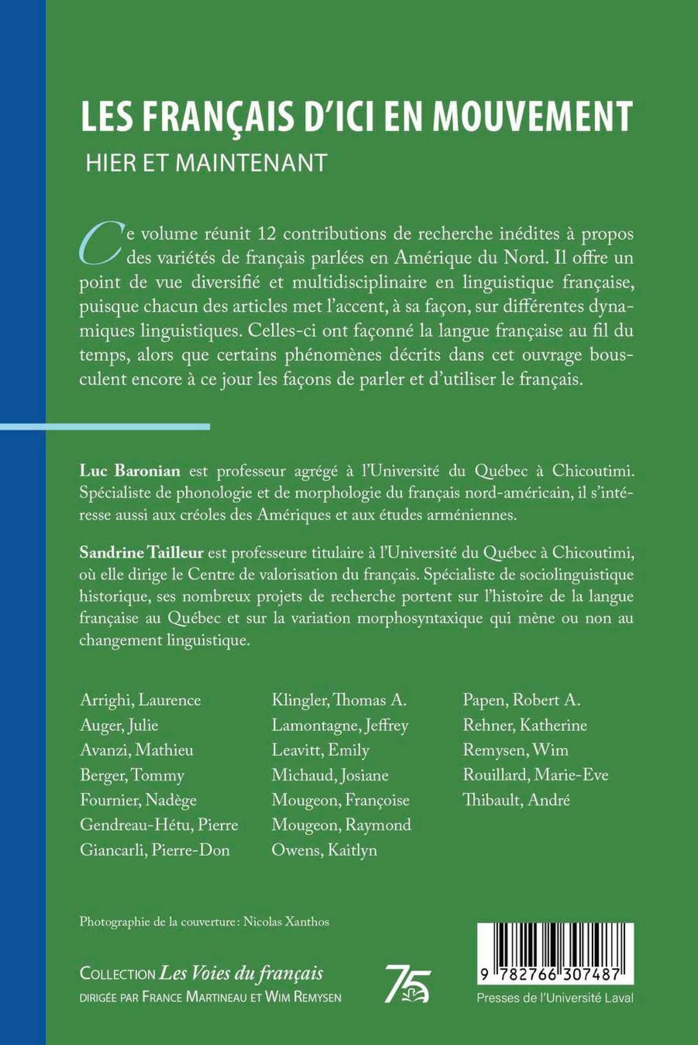 Ce volume réunit 12 contributions de recherche inédites à propos des variétés de français parlées en Amérique du Nord. Il offre un point de vue diversifié et multidisciplinaire en linguistique française, puisque chacun des articles met l’accent, à sa façon, sur différentes dynamiques linguistiques. Celles-ci ont façonné la langue française au fil du temps, alors que certains phénomènes décrits dans cet ouvrage bousculent encore à ce jour les façons de parler et d’utiliser le français.