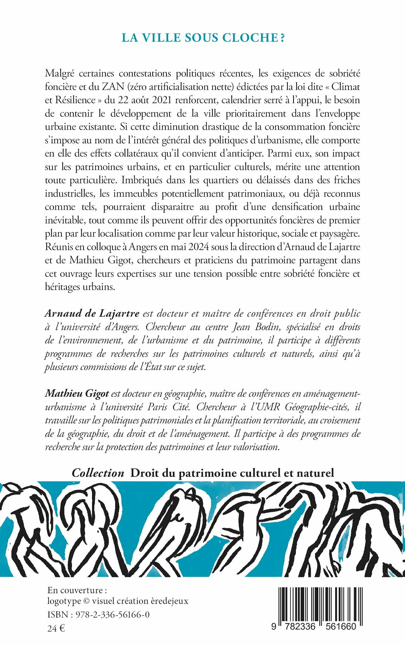 Malgré certaines contestations politiques récentes, les exigences de sobriété foncière et du ZAN (zéro artificialisation nette) édictées par la loi dite « Climat et Résilience » du 22 août 2021 renforcent, calendrier serré à l’appui, le besoin de contenir le développement de la ville prioritairement dans l’enveloppe urbaine existante. Si cette diminution drastique de la consommation foncière s’impose au nom de l’intérêt général des politiques d'urbanisme, elle comporte en elle des effets collatéraux qu’il convient d’anticiper. Parmi eux, son impact sur les patrimoines urbains, et en particulier culturels, mérite une attention toute particulière. Imbriqués dans les quartiers ou délaissés dans des friches industrielles, les immeubles potentiellement patrimoniaux, ou déjà reconnus comme tels, pourraient disparaitre au profit d’une densification urbaine inévitable, tout comme ils peuvent offrir des opportunités foncières de 1er plan par leur localisation comme par leur valeur historique, sociale et paysagère. Réunis en colloque à Angers en mai 2024 sous la direction d’A. de Lajartre et de M. Gigot, chercheurs et praticiens du patrimoine partagent dans cet ouvrage leurs expertises sur une tension possible entre sobriété foncière et héritages urbains.
