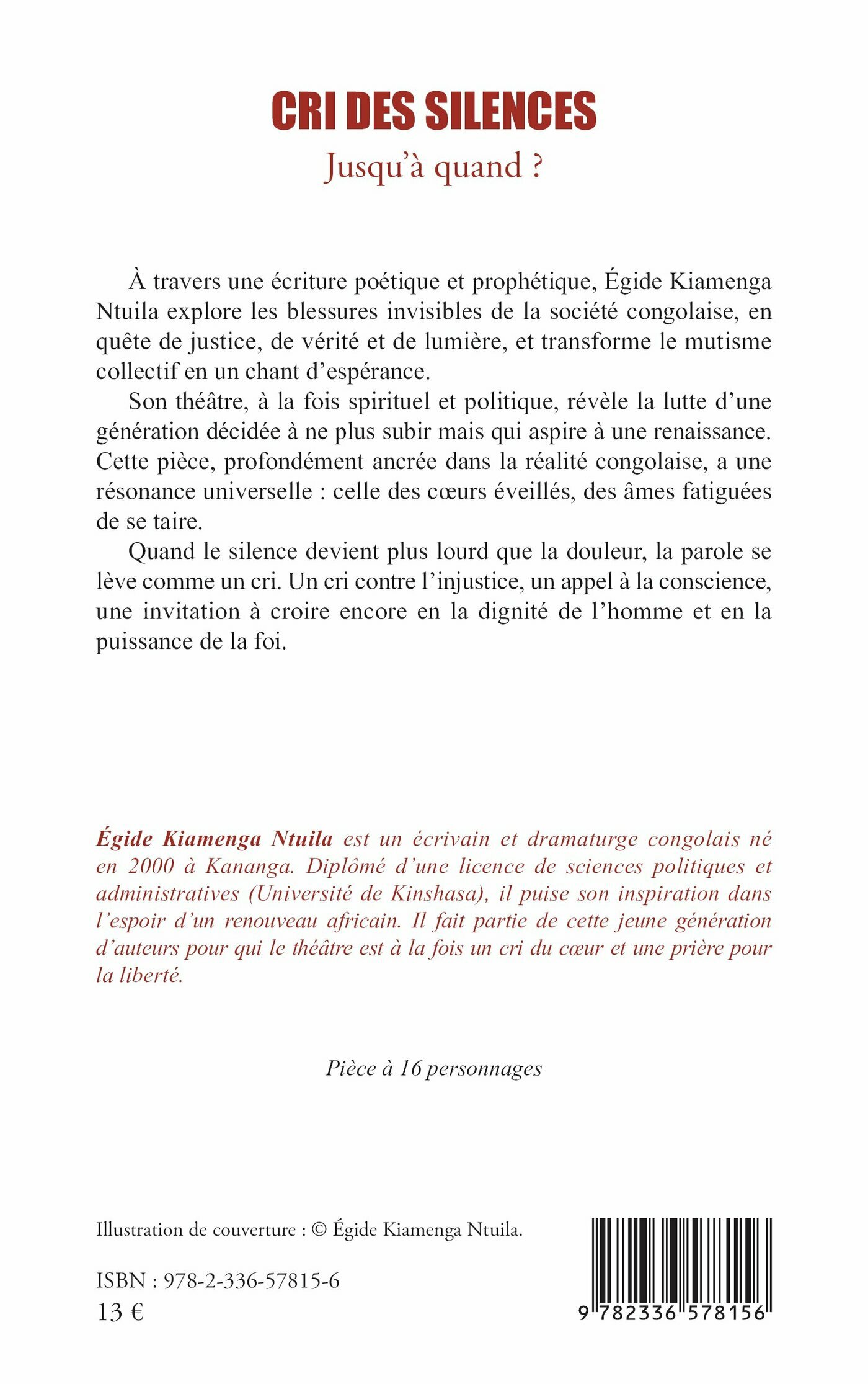 À travers une écriture poétique et prophétique, Égide Kiamenga Ntuila explore les blessures invisibles de la société congolaise, en quête de justice, de vérité et de lumière, et transforme le mutisme collectif en un chant d’espérance.