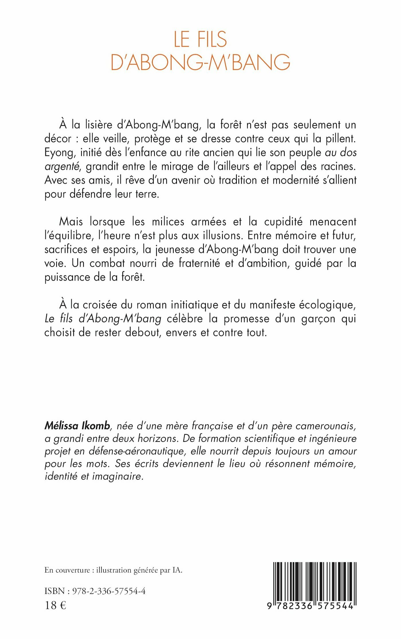 À la lisière d’Abong-M’bang, la forêt n’est pas seulement un décor : elle veille, protège et se dresse contre ceux qui la pillent. Eyong, initié dès l’enfance au rite ancien qui lie son peuple au dos argenté, grandit entre le mirage de l’ailleurs et l’appel des racines. Avec ses amis, il rêve d’un avenir où tradition et modernité s’allient pour défendre leur terre. Mais lorsque les milices armées et la cupidité menacent l’équilibre, l’heure n’est plus aux illusions. Entre mémoire et futur, sacrifices et espoirs, la jeunesse d’Abong-M’bang doit trouver une voie. Un combat nourri de fraternité et d’ambition, guidé par la puissance de la forêt. À la croisée du roman initiatique et du manifeste écologique, Le fils d’Abong-M’bang célèbre la promesse d’un garçon qui choisit de rester debout, envers et contre tout.