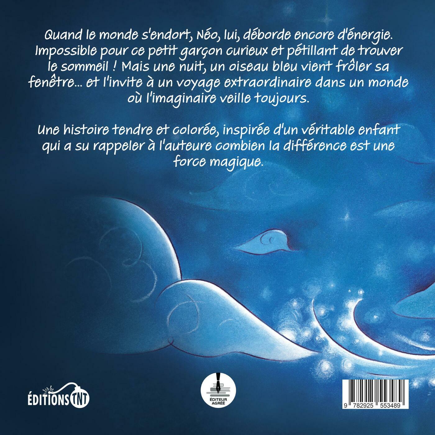 Quand le monde s’endort, Neo, lui, déborde encore d’énergie. Impossible pour ce petit garçon curieux et pétillant de trouver le sommeil !Mais une nuit, un oiseau bleu vient frôler sa fenêtre… et l’invite à un voyage extraordinaire dans un monde où l’imaginaire veille toujours.Une histoire tendre et colorée, inspirée d’un véritable enfant qui a su rappeler à l’auteure combien la différence est une force magique.Originaire de Montréal, Jenny Ouellet est intervenante sociale de formation et auteure-interprète passionnée.C’est dans une garderie, au contact quotidien des enfants, qu’elle découvre l’inspiration pour son premier livre jeunesse : Neo et la nuit magique.Touchée par l’énergie et la lumière d’un petit garçon prénommé Yamoussa, Jenny crée le personnage de Neo — un enfant débordant de vitalité, qui peine à trouver le calme lorsque la nuit tombe. Grâce à la rencontre d’un oiseau bleu, Neo s’aventure dans un monde imaginaire où ses émotions et son énergie deviennent des alliées.À travers ce récit empreint de poésie et de bienveillance, Jenny Ouellet célèbre la richesse de la différence, la puissance de l’imaginaire et la beauté des enfants qui voient la vie comme une grande aventure lumineuse.