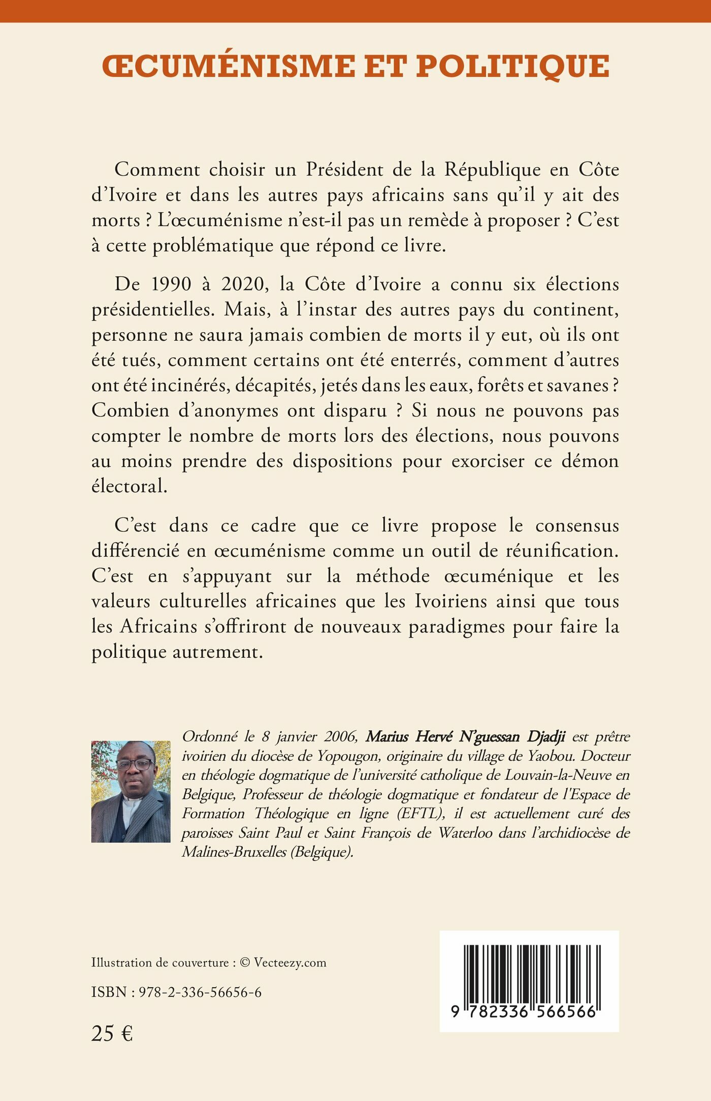 Comment choisir un Président de la République en Côte d’Ivoire et dans les autres pays africains sans qu’il y ait des morts ? L’œcuménisme n’est-il pas un remède à proposer ?C’est à cette problématique que répond ce livre.