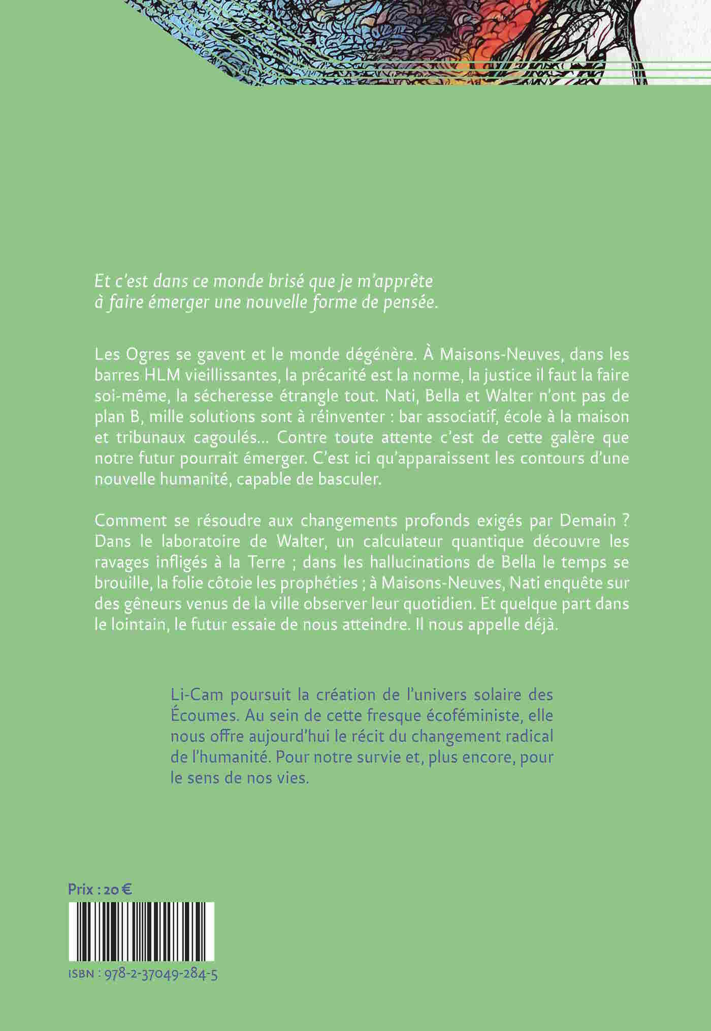 Comment accueillir cette autre vie qui nous attend, comment se résoudre aux changements ? Dans le calculateur quantique de Walter, un essaim d’IA (Intelligences Autres) découvre horrifié ce que nous imposons à la Terre ; dans les hallucinations de Bella, des araignées dégrafent les bornes du Temps ; dans les environs de Maisons-Neuves, Nati et ses amies enquêtent sur de mystérieux anthropologues venus les observer.
