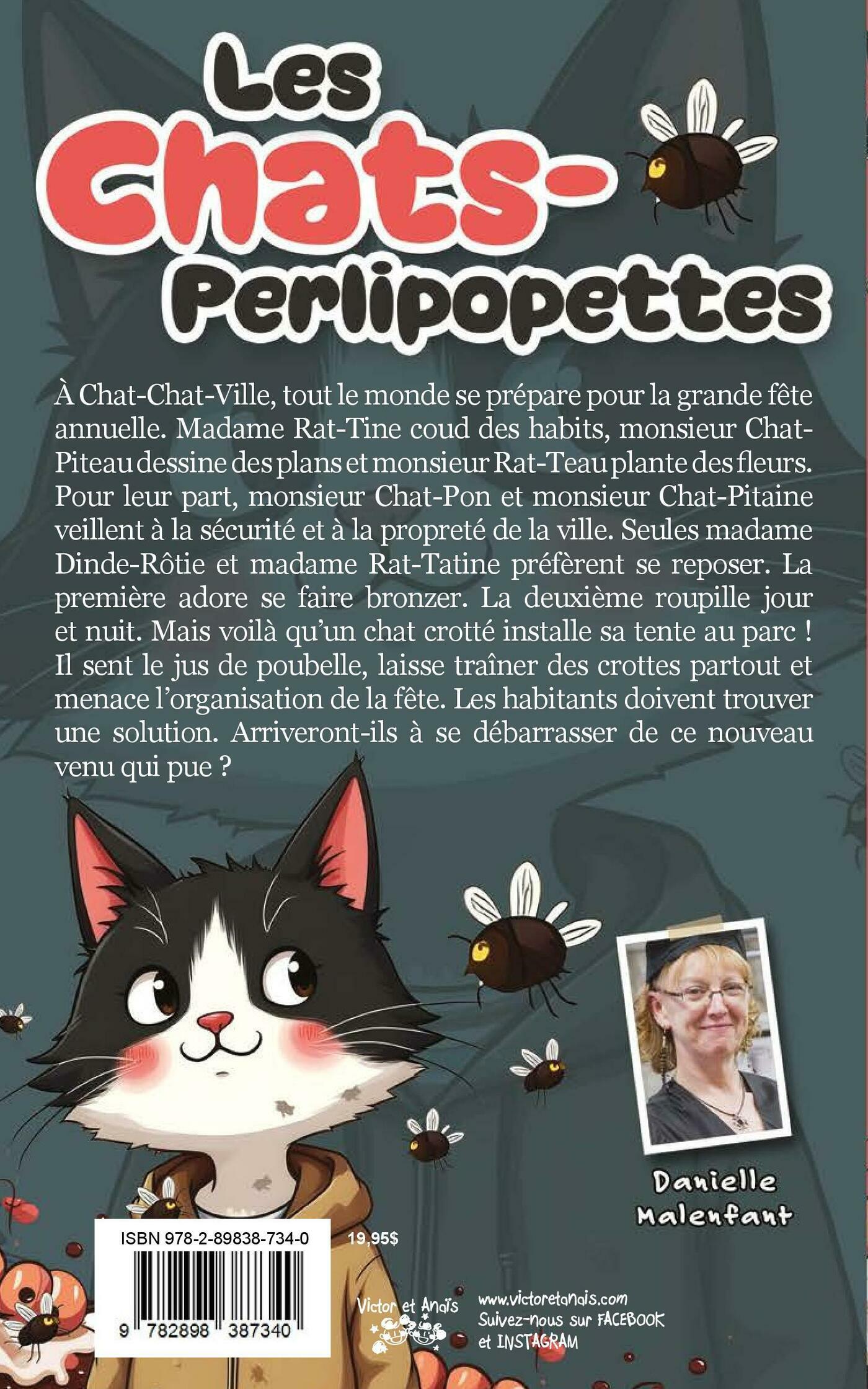 À Chat-Chat-Ville, tout le monde se prépare pour la grande fête annuelle. Madame Rat-Tine coud des habits, monsieur Chat- Piteau dessine des plans et monsieur Rat-Teau plante des fleurs. Pour leur part, monsieur Chat-Pon et monsieur Chat-Pitaine veillent à la sécurité et à la propreté de la ville. Seules madame Dinde-Rôtie et madame Rat-Tatine préfèrent se reposer. La première adore se faire bronzer. La deuxième roupille jour et nuit. Mais voilà qu’un chat crotté installe sa tente au parc ! Il sent le jus de poubelle, laisse traîner des crottes partout et menace l’organisation de la fête. Les habitants doivent trouver une solution. Arriveront-ils à se débarrasser de ce nouveau venu qui pue ?