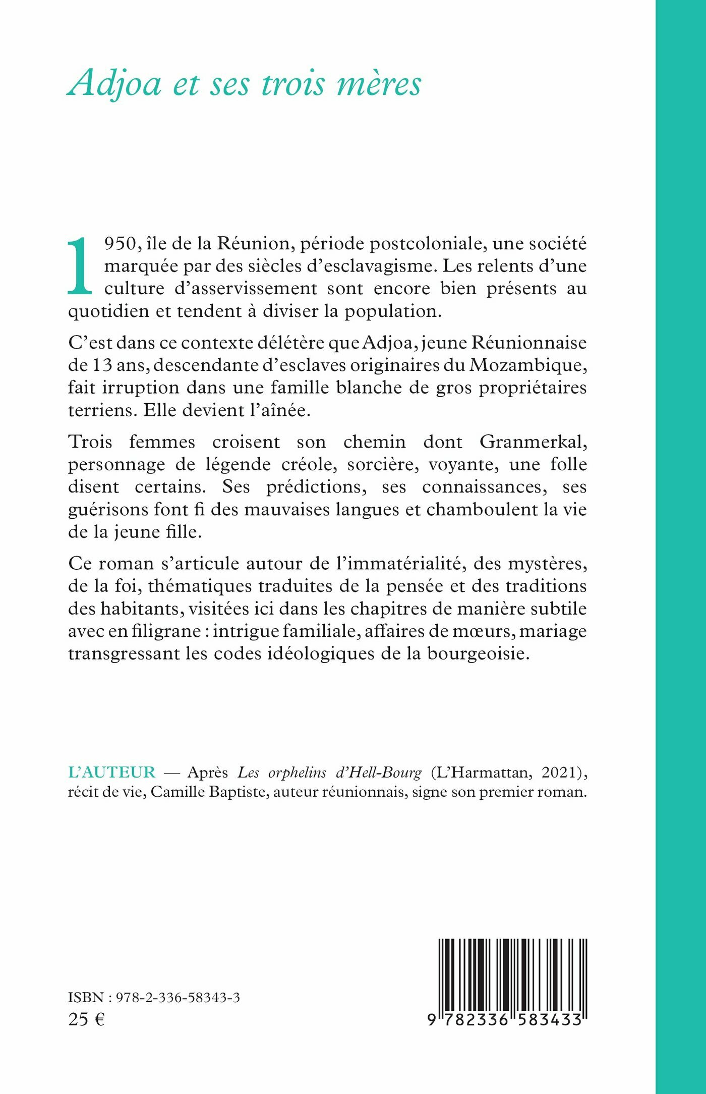 C’est dans ce contexte délétère que Adjoa, jeune Réunionnaise de 13 ans, descendante d’esclaves originaires du Mozambique, fait irruption dans une famille blanche de gros propriétaires terriens. Elle devient l’aînée.