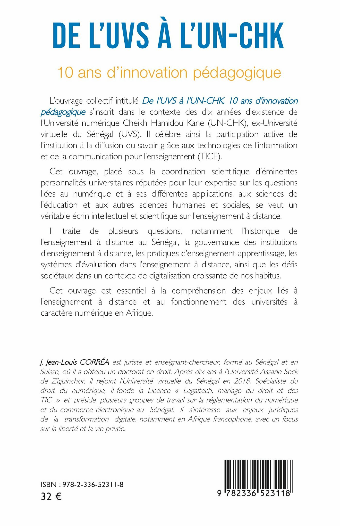 L’ouvrage collectif intitulé De l'UVS à l'UN-CHK : 10 ans d'innovation pédagogique s’inscrit dans le contexte des dix années d’existence de l’Université numérique Cheikh Hamidou Kane (UN-CHK), ex-Université virtuelle du Sénégal (UVS). Il célèbre ainsi la participation active de l’institution à la diffusion du savoir grâce aux technologies de l’information et de la communication pour l’enseignement (TICE).