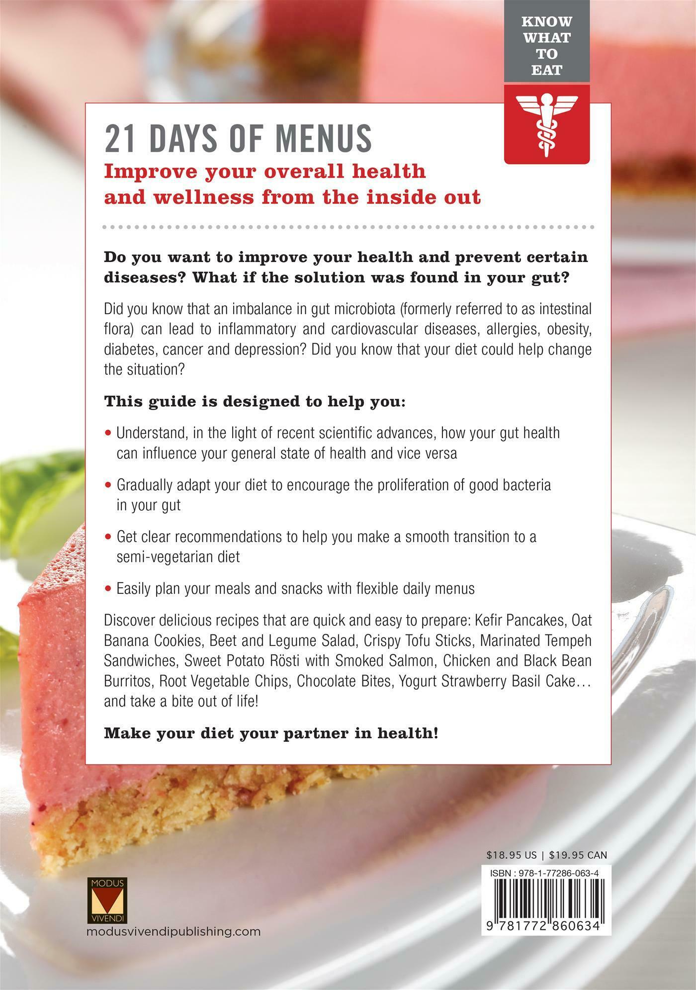 This guide is designed to help you: • Understand, in the light of recent scientific advances, how your gut health can influence your general state of health and vice versa; • Gradually adapt your diet to encourage the proliferation of good bacteria in your gut; • Get clear recommendations to help you make a smooth transition to a semi-vegetarian diet; • Easily plan your meals and snacks with flexible daily menus. Discover delicious recipes that are quick and easy to prepare: Kefir Pancakes, Oat Banana Cookies, Beet and Legume Salad, Crispy Tofu Sticks, Marinated Tempeh Sandwiches, Sweet Potato Rösti with Smoked Salmon, Chicken and Black Bean Burritos, Root Vegetable Chips, Chocolate Bites, Yogurt Strawberry Basil Cake… and take a bite out of life!
