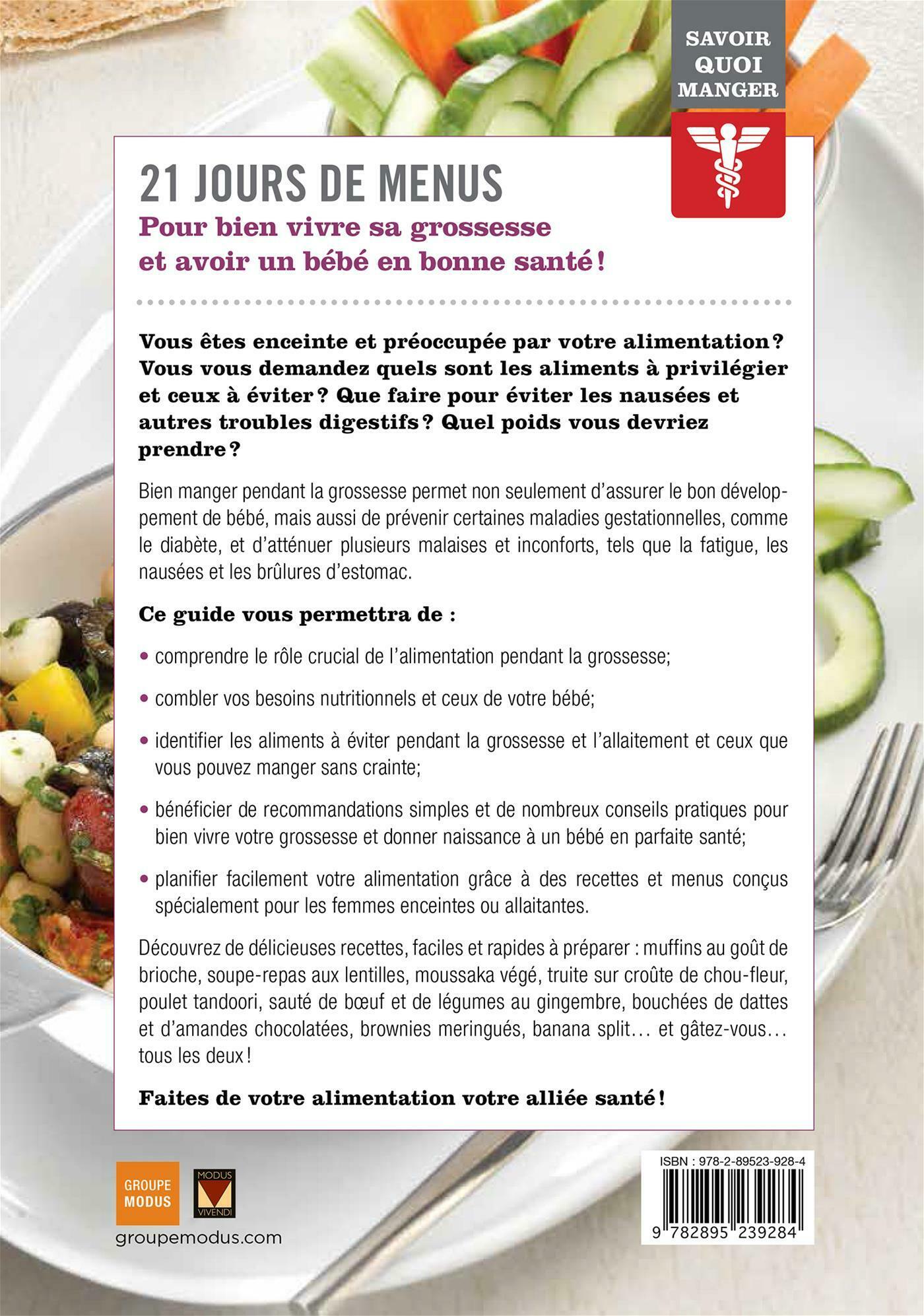 .Bien manger pendant la grossesse permet non seulement d'assurer le bon développement de bébé, mais aussi de prévenir certaines maladies gestationnelles, comme le diabète, et d'atténuer plusieurs malaises et inconforts, tels que la fatigue, les nausées et les brûlures d'estomac.