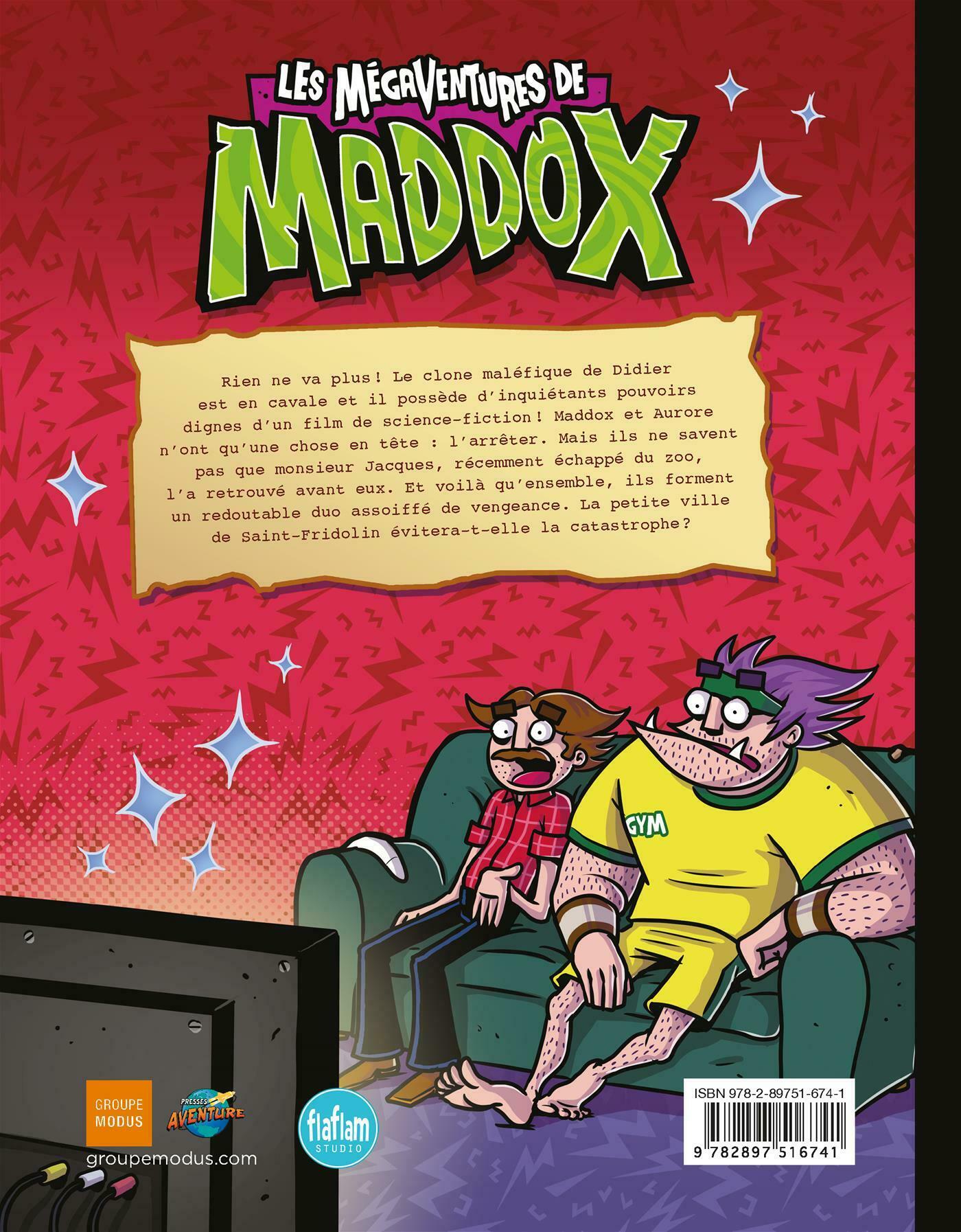 Rien ne va plus! Le clone maléfique de Didier est en cavale et il possède d'inquiétants pouvoirs dignes d'un film de science-fiction! Maddox et Aurore n'ont qu'une chose en tête: l'arrêter. Mais ils ne savent pas que monsieur Jacques, récemment échappé du zoo, l'a retrouvé avant eux. Et voilà qu'ensemble, ils forment un redoutable duo assoiffé de vengeance. La petite ville de Saint-Fridolin évitera-t-elle la catastrophe?
