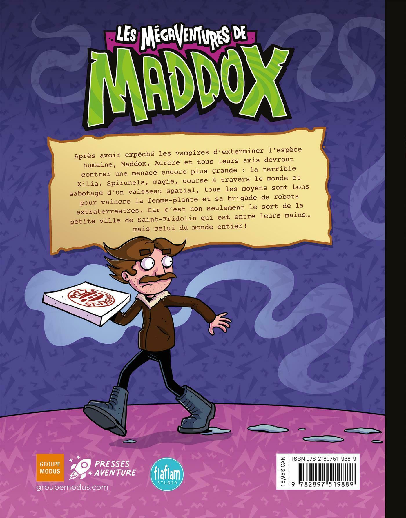 Après avoir empêché les vampires d'exterminer l'espèce humaine, Maddox, Aurore et tous leurs amis devront contrer une menace encore plus grande : la terrible Xilia. Spirunels, magie, course à travers le monde et sabotage d'un vaisseau spatial, tous les moyens sont bons pour vaincre la femme-plante et sa brigade de robots extraterrestres. Car c'est non seulement le sort de la petite ville de Saint-Fridolin qui est entre leurs mains… mais celui du monde entier !