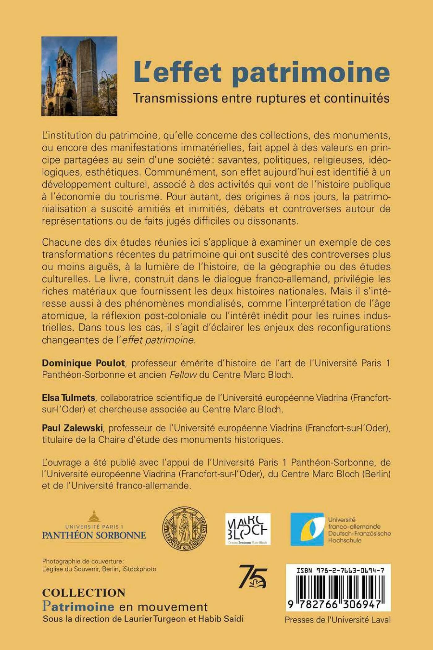 Chacune des dix études réunies ici s’applique à examiner un exemple de ces transformations récentes du patrimoine qui ont suscité des controverses plus ou moins aiguës, à la lumière de l’histoire, de la géographie ou des études culturelles. Le livre, construit dans le dialogue franco-allemand, privilégie les riches matériaux que fournissent les deux histoires nationales. Mais il s’intéresse aussi à des phénomènes mondialisés, comme l’interprétation de l’âge atomique, la réflexion post-coloniale, ou l’intérêt inédit pour les ruines industrielles. Dans tous les cas, il s’agit d’éclairer les enjeux des intérêts et des pratiques que révèlent à chaque instant les reconfigurations changeantes de l’effet patrimoine.