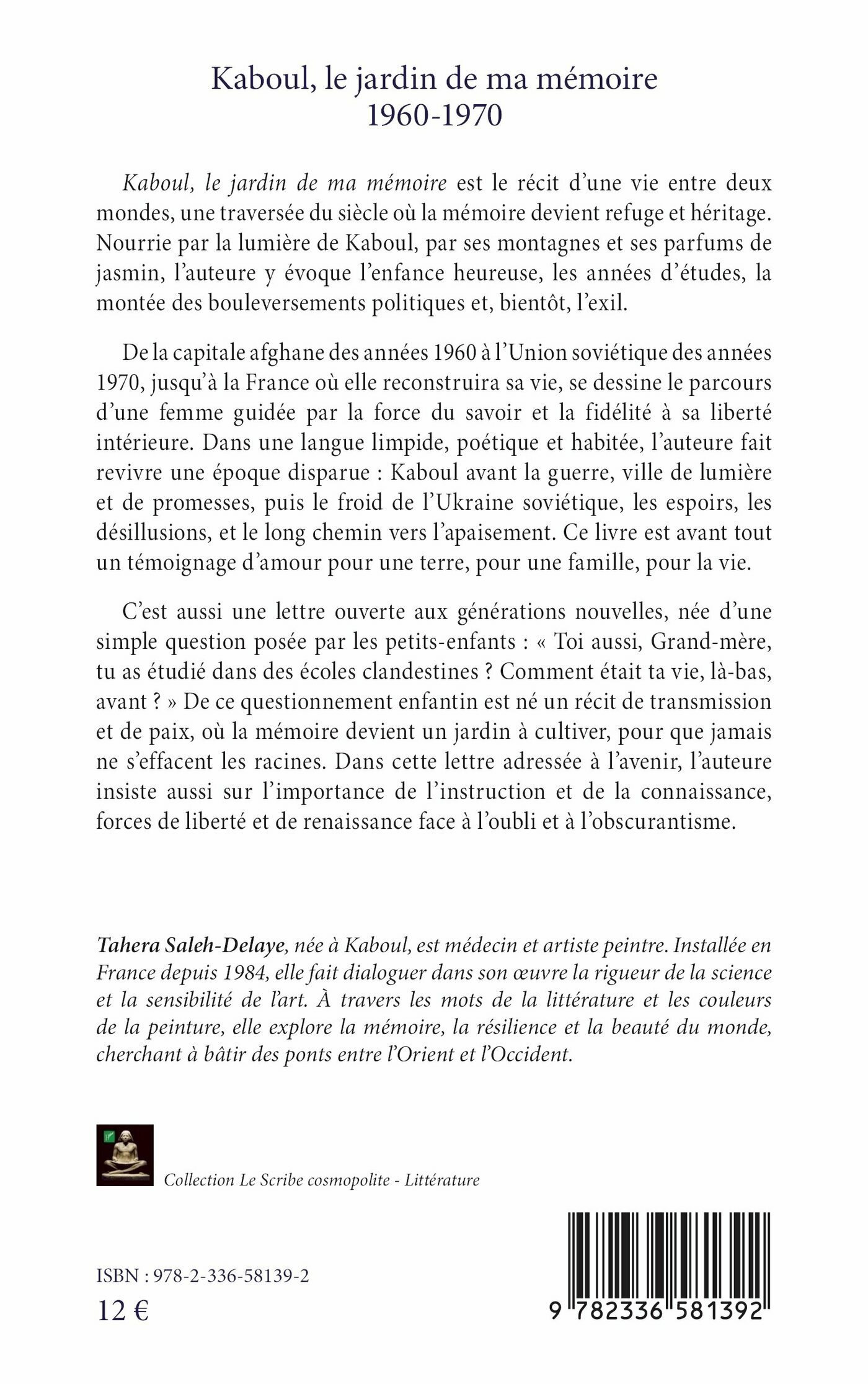 Kaboul, le jardin de ma mémoire est le récit d’une vie entre deux mondes, une traversée du siècle où la mémoire devient refuge et héritage. Nourrie par la lumière de Kaboul, par ses montagnes et ses parfums de jasmin, l’auteure y évoque l’enfance heureuse, les années d’études, la montée des bouleversements politiques et, bientôt, l’exil.