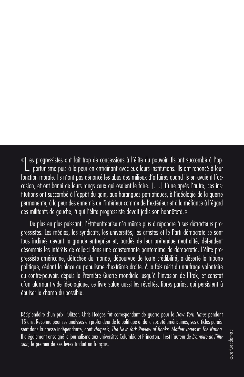 Caroline Allard, Fanny Britt, Laurence Côté-Fournier, Anne Caroline Desplanques, Isabelle Dumont, Marie-Claude Élie-Morin, Michaël Foessel, Jonathan Franzen, Pascal Girard, Chris Hedges, Michel Huneault, Gabrielle Immarigeon, Nicolas Langelier, François Lemay, Jocelyn Maclure, Steve Proulx, Nathalie Quintane, Clément Sabourin, Marc-André Sabourin, Mélanie Vincelette, Marc-André Cyr