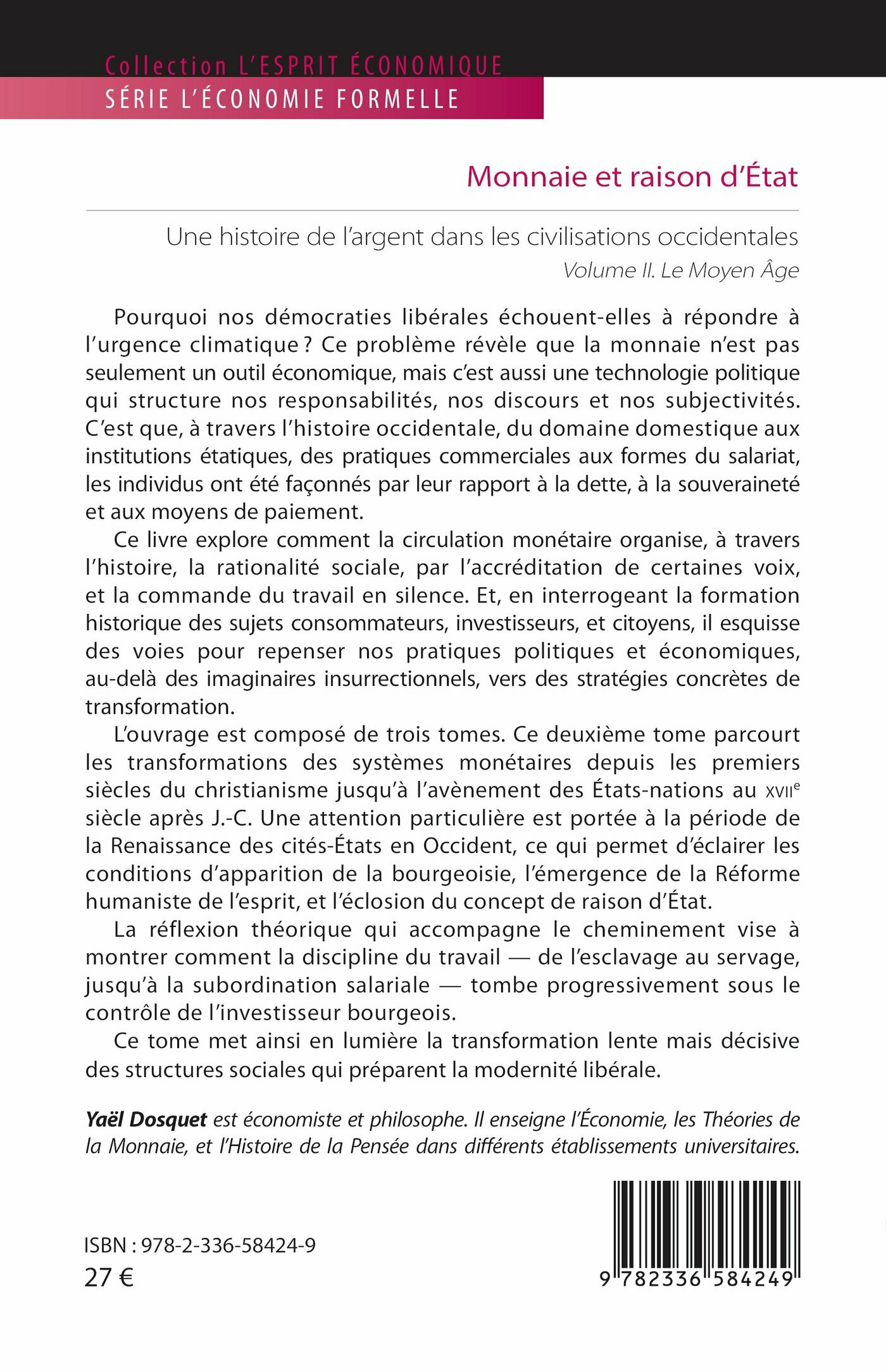 L’ouvrage est composé de trois tomes. Ce deuxième tome parcourt les transformations des systèmes monétaires depuis les premiers siècles du christianisme jusqu’à l’avènement des États-nations au XVIIe siècle après J.-C. Une attention particulière est portée à la période de la Renaissance des cités-États en Occident, ce qui permet d’éclairer les conditions d’apparition de la bourgeoisie, l’émergence de la Réforme humaniste de l’esprit, et l’éclosion du concept de raison d’État.