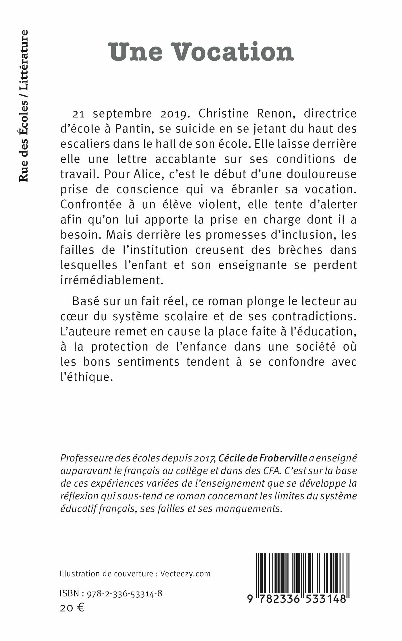 Basé sur un fait réel, ce roman plonge le lecteur au cœur du système scolaire et de ses contradictions. L’auteure remet en cause la place faite à l’éducation, à la protection de l’enfance dans une société où les bons sentiments tendent à se confondre avec l’éthique.
