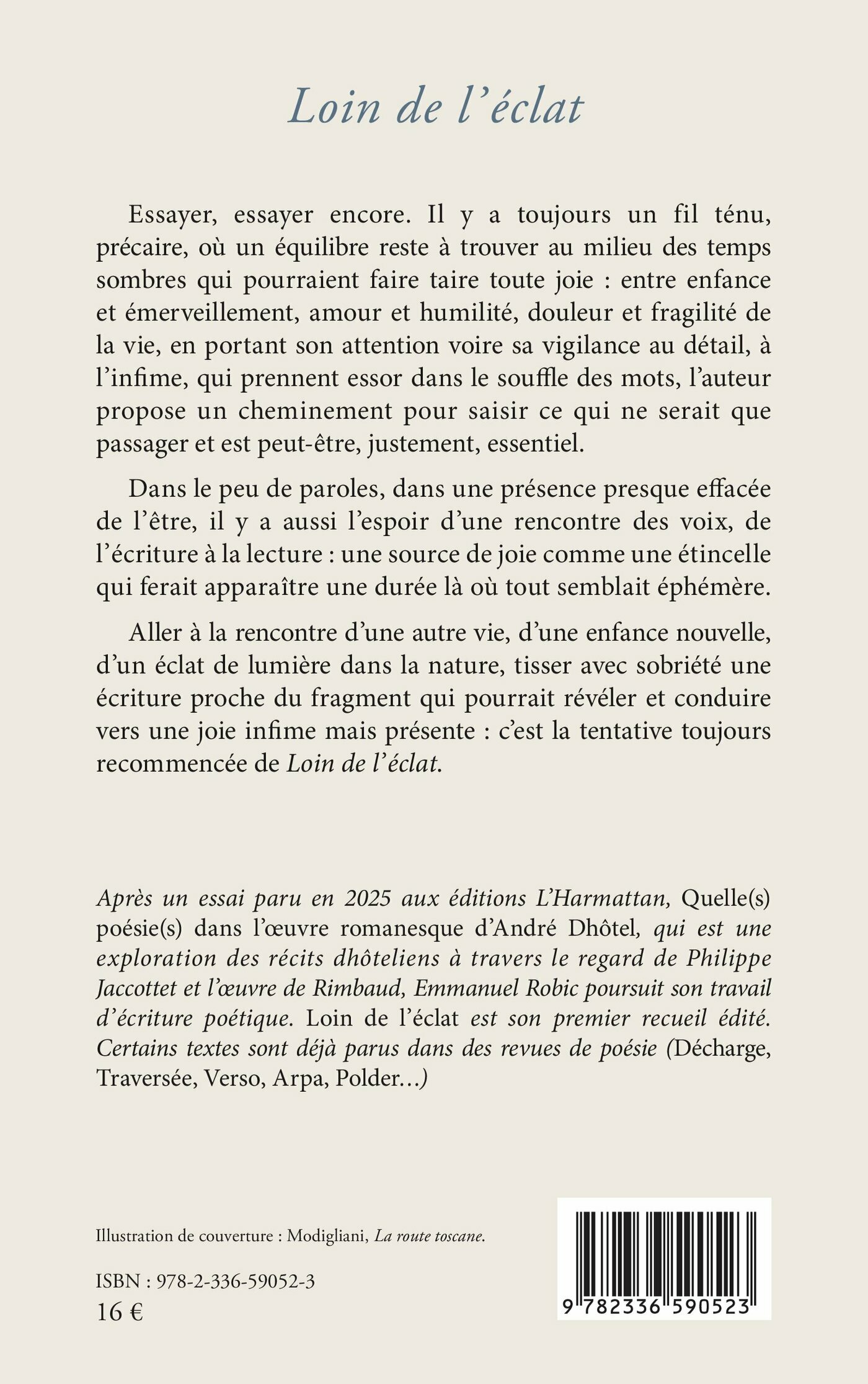 Aller à la rencontre d’une autre vie, d’une enfance nouvelle, d’un éclat de lumière dans la nature, tisser avec sobriété une écriture proche du fragment qui pourrait révéler et conduire vers une joie infime mais présente : c’est la tentative toujours recommencée de Loin de l’éclat.