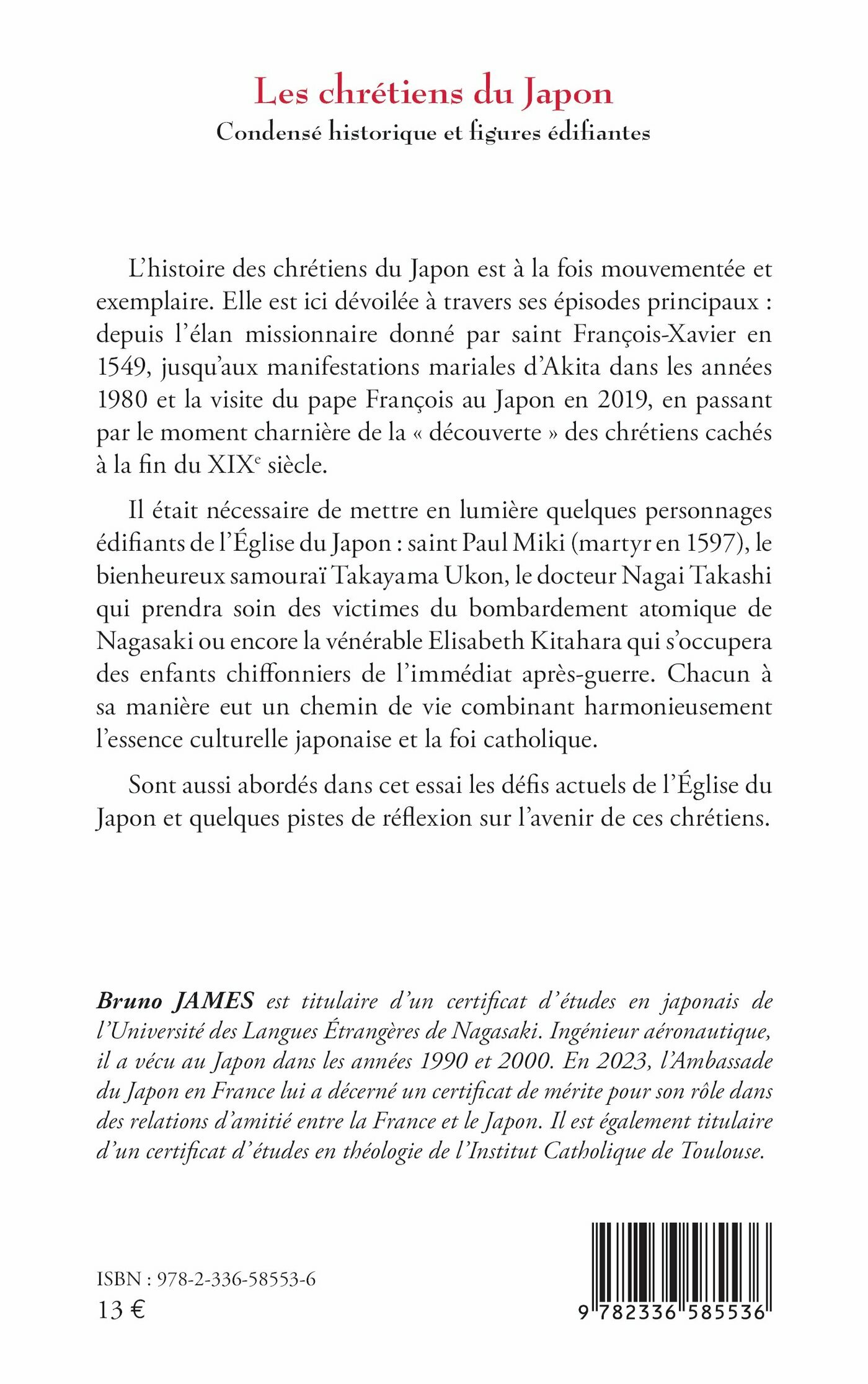L’histoire des chrétiens du Japon est à la fois mouvementée et exemplaire. Elle est ici dévoilée à travers ses épisodes principaux: depuis l’élan missionnaire donné par saint François-Xavier en 1549, jusqu’aux manifestations mariales d’Akita dans les années 1980 et la visite du pape François au Japon en 2019, en passant par le moment charnière de la « découverte » des chrétiens cachés à la fin du XIXe siècle.