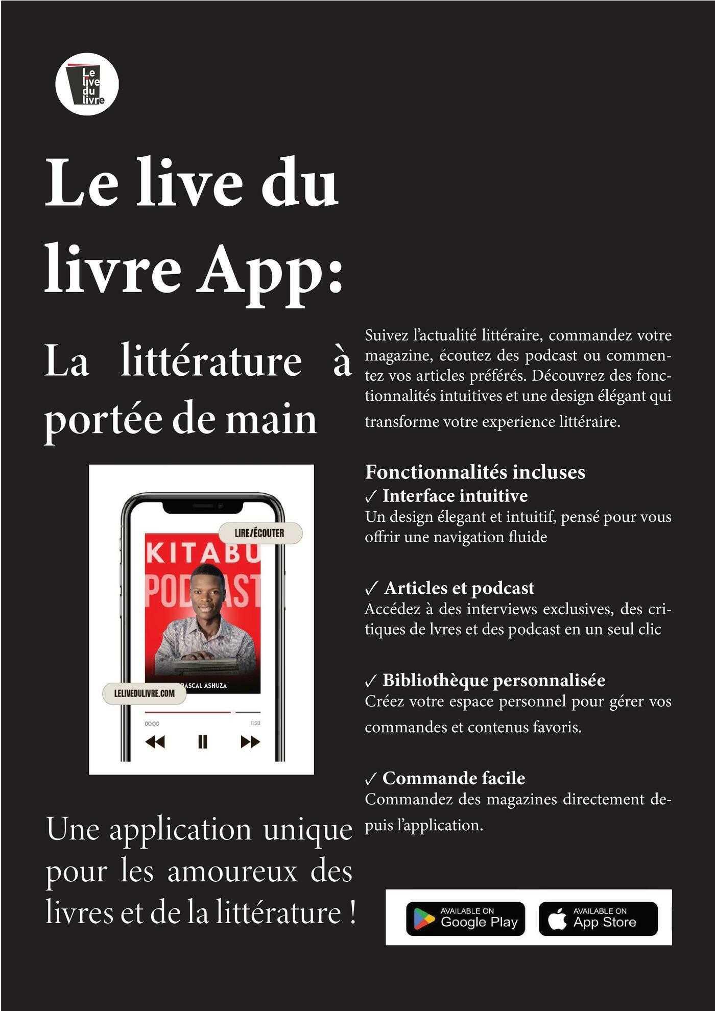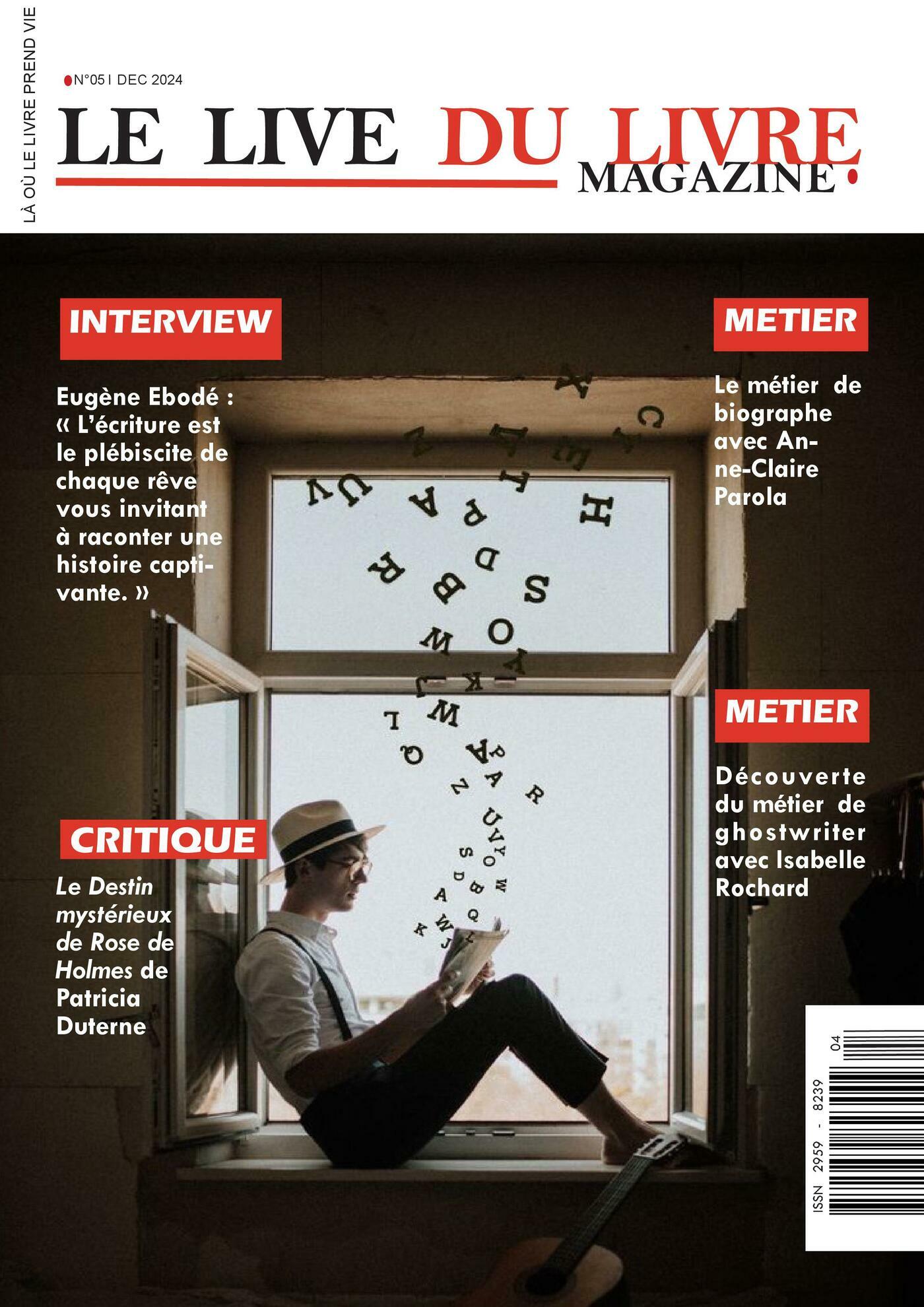 Ce mois-ci, Le live du livre explore l’influence immense des mots, capables de soigner, de bâtir ou de transformer notre réalité. À travers des rencontres inspirantes et des analyses profondes, nous vous invitons à redécouvrir la magie de l'écriture.Retrouvez une interview exclusive d'Eugène Ebodé, qui nous livre une réflexion poignante sur l'écriture comme plébiscite du rêve et son engagement pour les lettres africaines. Partez également à la découverte des métiers de l'ombre avec la biographe Anne-Claire Parola et la ghostwriter Isabelle Rochard. Côté critiques, laissez-vous emporter par le thriller historique de Patricia Duterne ou la poésie inspirante d'Aryé Baumzecer. Un numéro riche, conçu pour enchanter vos sens et stimuler votre imaginaire.Au sommaire :Édito : "Et si les mots pouvaient... tout !" par Pascal Ashuza.Grand Entretien : Eugène Ebodé, l'écriture au service du continent africain.Métiers du livre : Le métier de biographe (Anne-Claire Parola) et de ghostwriter (Isabelle Rochard).Critiques Littéraires : Le Destin mystérieux de Rose de Holmes de Patricia Duterne et Un Cœur à Haut Potentiel d'Aryé Baumzecer.Bien-être & Société : "Les mots : refuge spot du cœur" par Amal Bakkar et un manuel sur le vaginisme par Élodie Bouti-Bodat.Réflexion : Voyage au cœur du désir d'écrire avec Roland Barthes.
