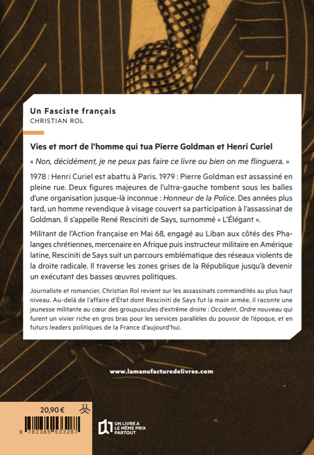 Militant de l’Action française en Mai 68, engagé au Liban aux côtés des Phalanges chrétiennes, mercenaire en Afrique puis instructeur militaire en Amérique latine, Resciniti de Says suit un parcours emblématique des réseaux violents de la droite radicale. Il traverse les zones grises de la République jusqu’à devenir un exécutant des basses œuvres politiques.