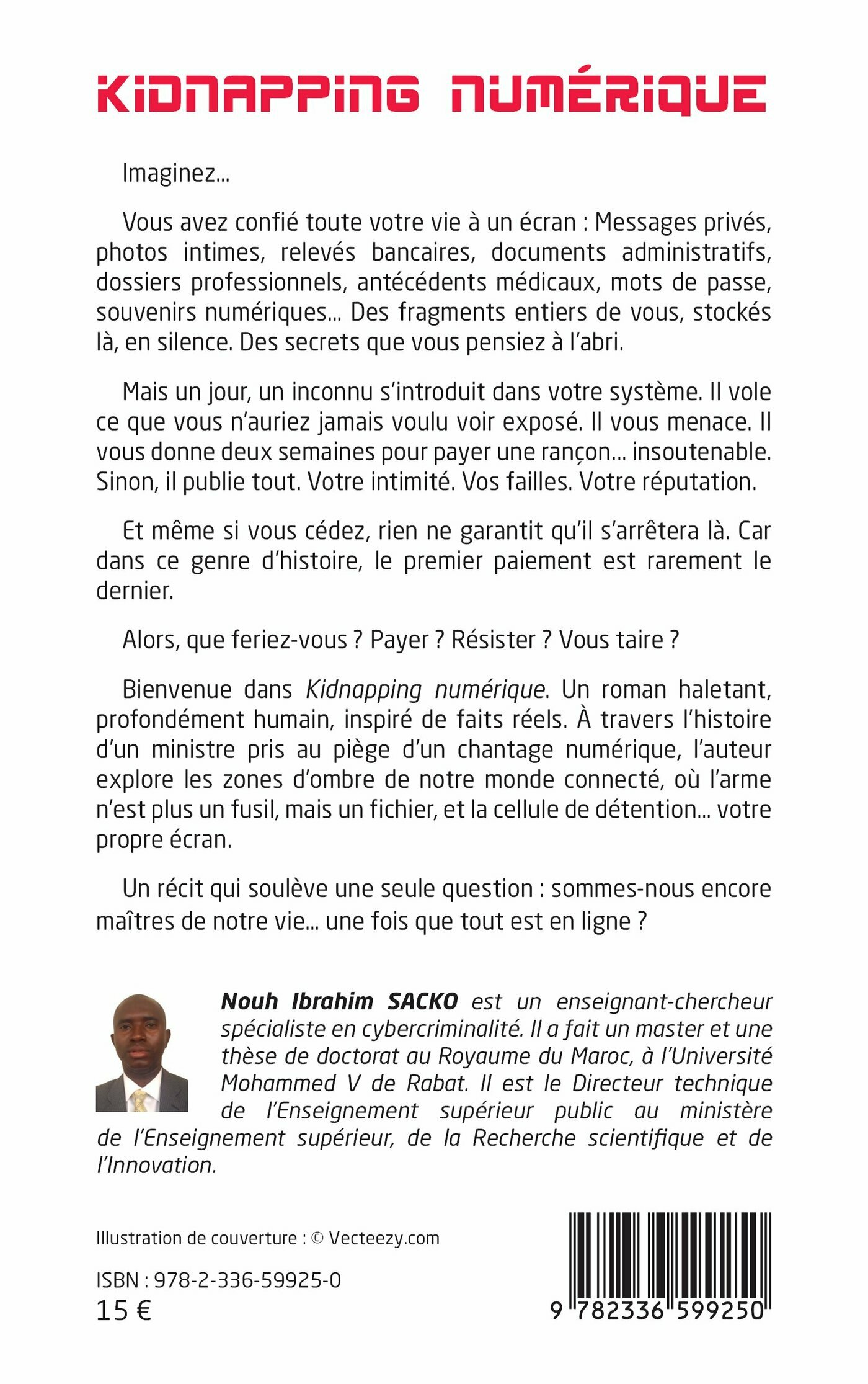 Bienvenue dans Kidnapping numérique. Un roman haletant, profondément humain, inspiré de faits réels. À travers l’histoire d’un ministre pris au piège d’un chantage numérique, l’auteur explore les zones d’ombre de notre monde connecté, où l’arme n’est plus un fusil, mais un fichier, et la cellule de détention… votre propre écran.