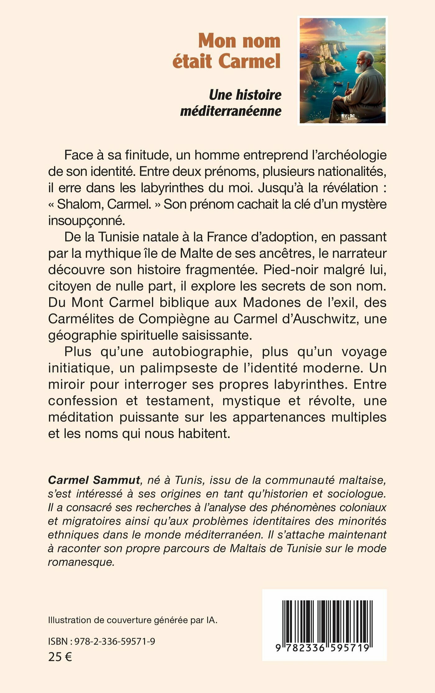 De la Tunisie natale à la France d’adoption, en passant par la mythique île de Malte de ses ancêtres, le narrateur découvre son histoire fragmentée. Pied-noir malgré lui, citoyen de nulle part, il explore les secrets de son nom. Du Mont Carmel biblique aux Madones de l’exil, des Carmélites de Compiègne au Carmel d’Auschwitz, une géographie spirituelle saisissante.