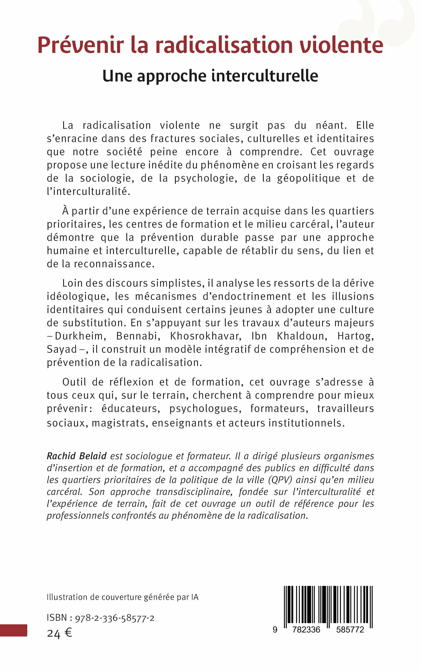 À partir d’une expérience de terrain acquise dans les quartiers prioritaires, les centres de formation et le milieu carcéral, l’auteur démontre que la prévention durable passe par une approche humaine et interculturelle, capable de rétablir du sens, du lien et de la reconnaissance.