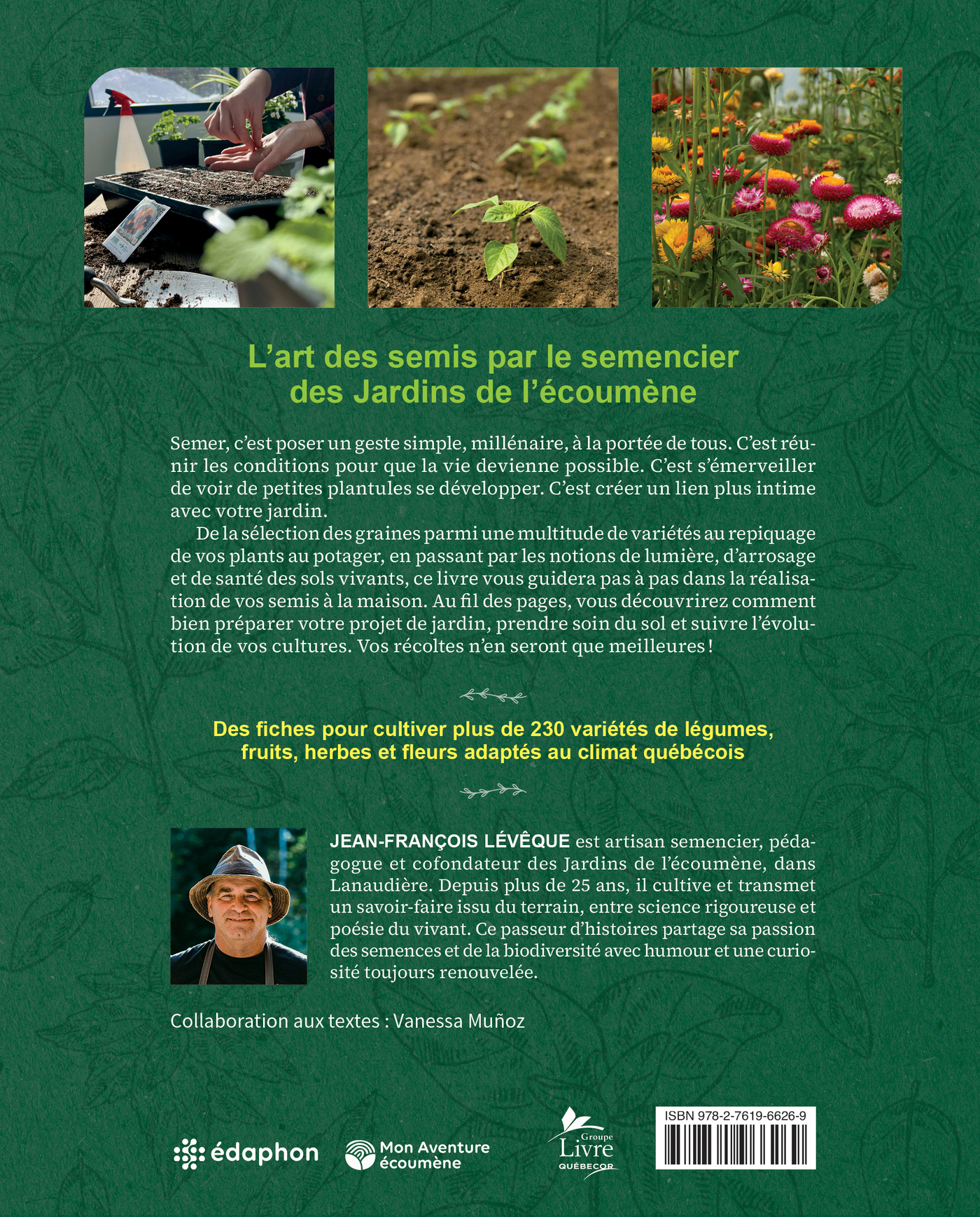 Semer, c’est poser un geste simple, millénaire, à la portée de tous. C’est réunir les conditions pour que la vie devienne possible. C’est s’émerveiller de voir de petites plantules se développer. C’est créer un lien plus intime avec votre jardin. De la sélection des graines parmi une multitude de variétés au repiquage de vos plants au potager, en passant par les notions de lumière, d’arrosage et de santé des sols vivants, ce livre vous guidera pas à pas dans la réalisation de vos semis à la maison. Au fil des pages, vous découvrirez comment bien préparer votre projet de jardin, prendre soin du sol et suivre l’évolution de vos cultures. Vos récoltes n’en seront que meilleures!