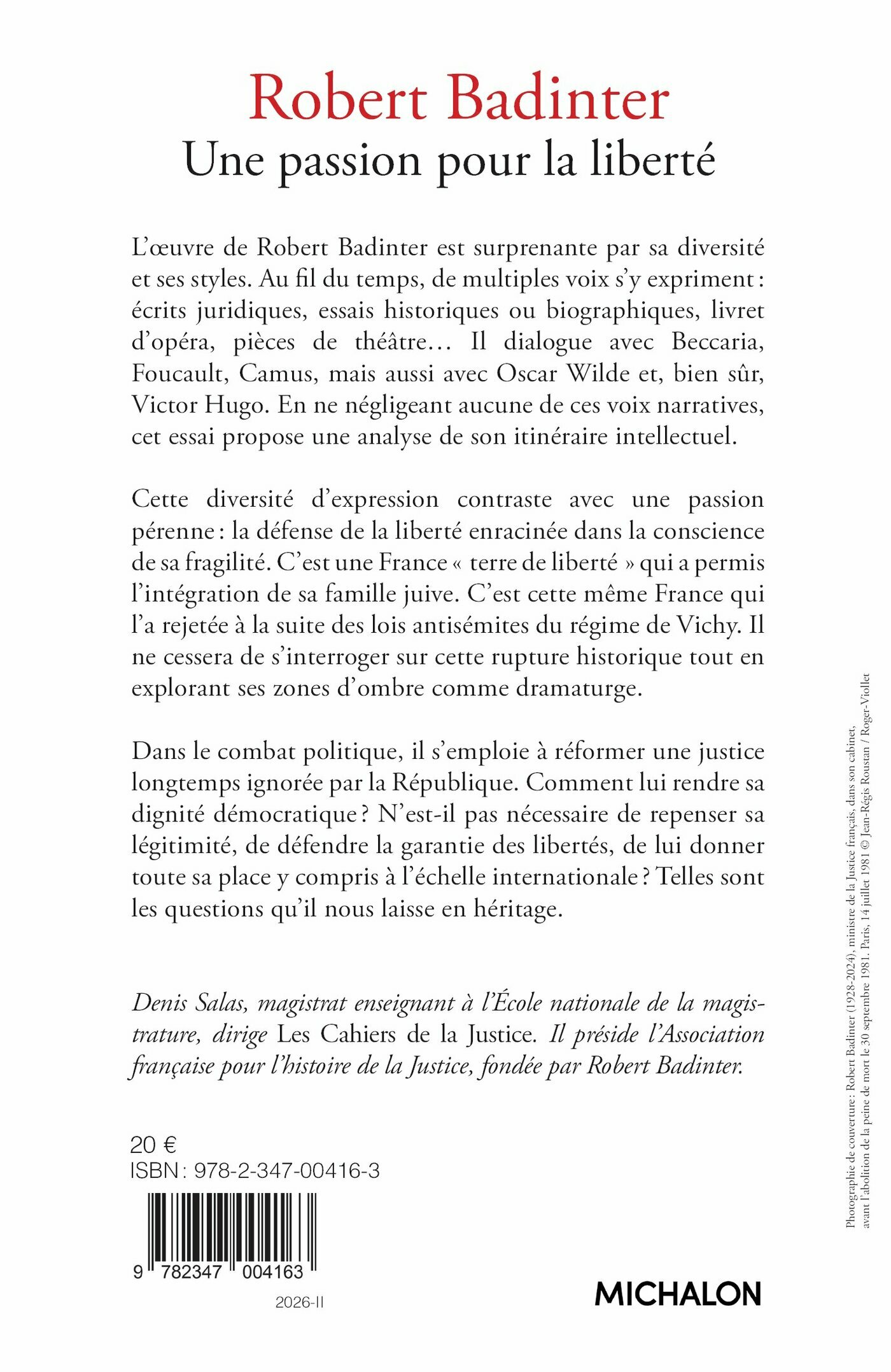 L’œuvre de Robert Badinter est surprenante par sa diversité et ses styles. Au fil du temps, de multiples voix s’y expriment : écrits juridiques, essais historiques ou biographiques, livret d’opéra, pièces de théâtre… Il dialogue avec Beccaria, Foucault, Camus, mais aussi avec Oscar Wilde et, bien sûr, Victor Hugo. En ne négligeant aucune de ces voix narratives, cet essai propose une analyse de son itinéraire intellectuel.