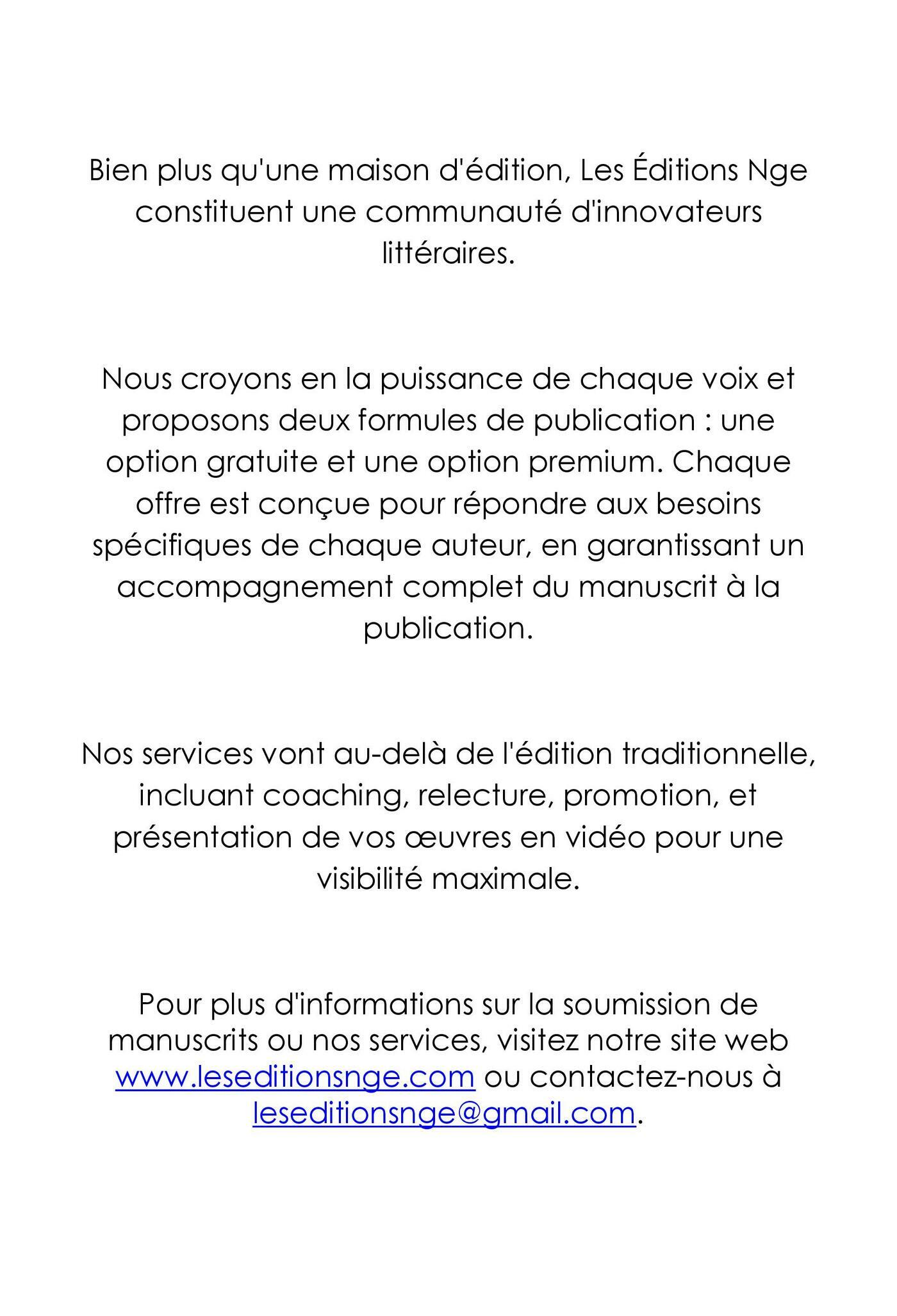 Dans un monde où la pauvreté et l'injustice sociale semblent souvent inébranlables, "Plainte contre l'Inconnu : Les clés de la prospérité" se dresse comme un phare d'espoir et de transformation. Bulonza Shamavu Romain, auteur et mentor, partage son parcours inspirant, depuis les réalités austères de la République démocratique du Congo jusqu'à devenir un éveilleur de consciences et un fervent défenseur de l'entrepreneuriat.Ce livre dévoile une quête profonde de compréhension et d'action face aux mécanismes de la plainte et de la pauvreté. À travers une exploration riche et nuancée des défis socio-économiques, Romain offre des perspectives innovantes pour transformer la résignation en résilience et la passivité en prospérité.En plongeant dans des récits poignants de vies transformées, vous découvrirez des histoires d'entrepreneurs courageux comme Mama Mwema, Félix Maroy et Murhula Zigabe, qui ont surmonté des obstacles insurmontables grâce à la détermination, à l'innovation et au soutien communautaire. Ces exemples vivants illustrent que le changement est possible, même dans les circonstances les plus difficiles."Plainte contre l'Inconnu" n'est pas seulement un livre, c'est un appel à l'action. Il encourage chacun à développer des compétences entrepreneuriales, à s'engager dans des initiatives collectives et à collaborer pour créer un changement durable. En s'appuyant sur des références philosophiques et spirituelles profondes, l'auteur souligne l'importance de la justice sociale, de la solidarité et de la responsabilité individuelle dans la lutte contre la pauvreté.Cet ouvrage s'adresse aux décideurs, aux leaders communautaires, et à tous ceux qui cherchent à faire une différence significative dans leur vie et dans celle des autres. En adoptant une approche holistique et collaborative, il est possible de bâtir des communautés prospères et résilientes, où chacun a la chance de réaliser son plein potentiel.Embarquez dans cette aventure transformative avec Bulonza Shamavu Romain et découvrez les clés pour ouvrir les portes de la prospérité. Que ce livre soit votre guide pour passer de la plainte à l'action, de l'incertitude à la découverte, et de la pauvreté à la prospérité. Paix, Amour et Abondance !