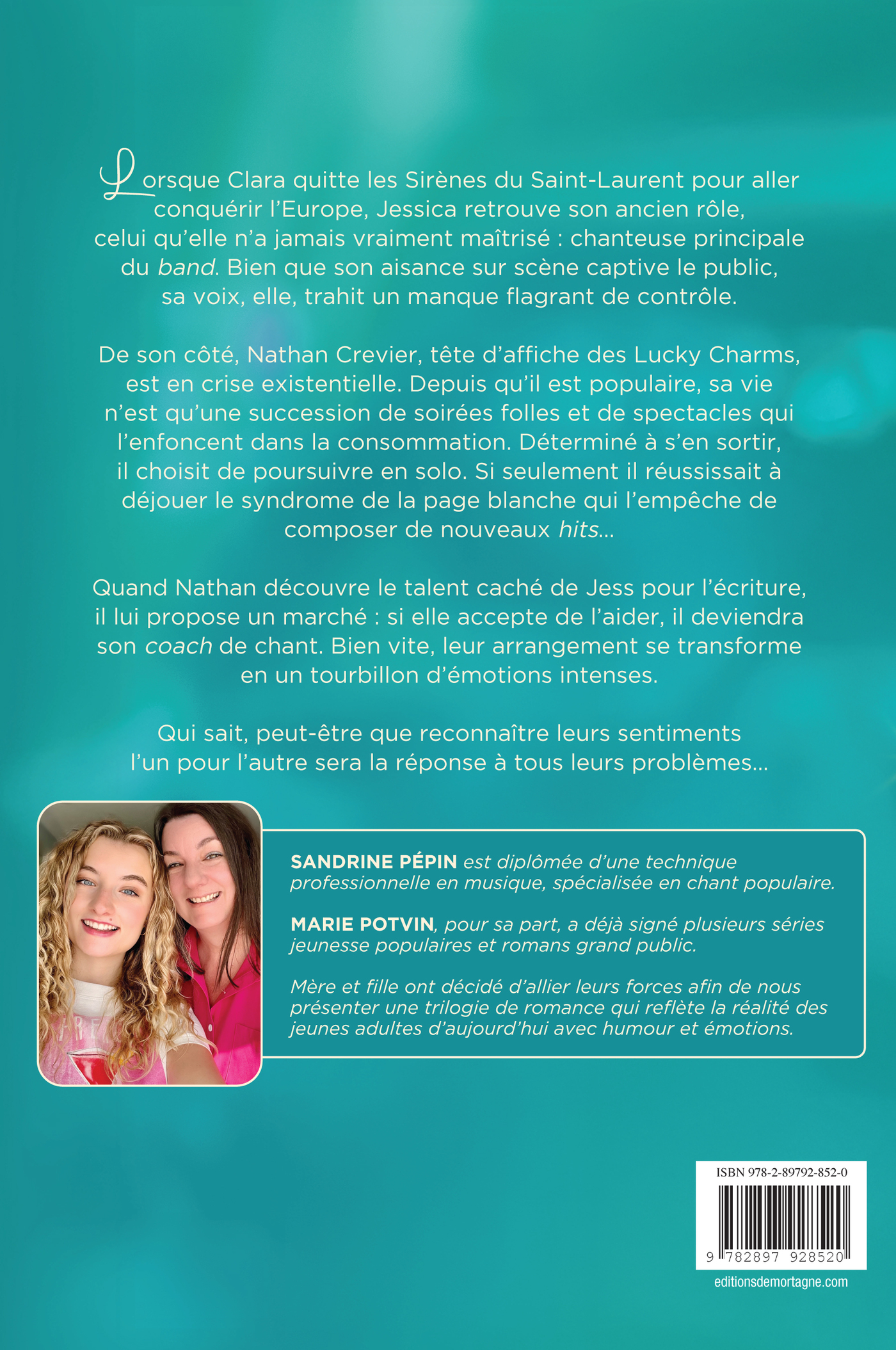 Lorsque Clara quitte les Sirènes du Saint-Laurent pour aller conquérir l’Europe, Jessica retrouve son ancien rôle, celui qu’elle n’a jamais vraiment maîtrisé : chanteuse principale du band. Bien que son aisance sur scène captive le public, sa voix, elle, trahit un manque flagrant de contrôle.De son côté, Nathan Crevier, tête d’affiche des Lucky Charms, est en crise existentielle. Depuis qu’il est populaire, sa vie n’est qu’une succession de soirées folles et de spectacles qui l’enfoncent dans la consommation. Déterminé à s’en sortir, il choisit de poursuivre en solo. Si seulement il réussissait à déjouer le syndrome de la page blanche qui l’empêche de composer de nouveaux hits…Quand Nathan découvre le talent caché de Jess pour l’écriture, il lui propose un marché : si elle accepte de l’aider, il deviendra son coach de chant. Bien vite, leur arrangement se transforme en un tourbillon d’émotions intenses.Qui sait, peut-être que reconnaître leurs sentiments l’un pour l’autre sera la réponse à tous leurs problèmes…