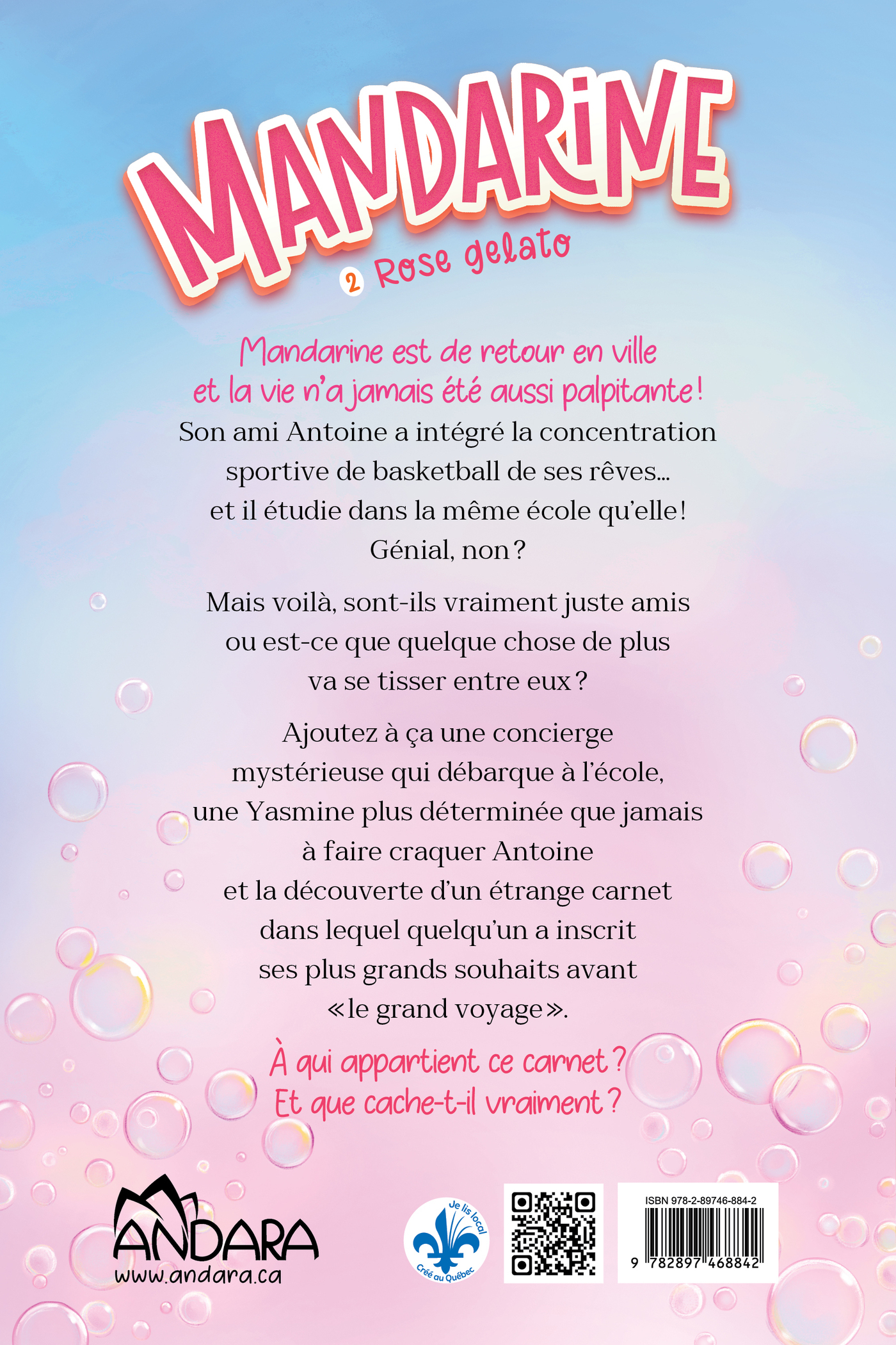 Mandarine est de retour en ville et la vie n’a jamais été aussi palpitante ! Son ami Antoine a intégré la concentration sportive de basketball de ses rêves… et il étudie dans la même école qu’elle ! Génial, non ? Mais voilà, sont-ils vraiment juste amis ou est-ce que quelque chose de plus va se tisser entre eux ? Ajoutez à ça une concierge mystérieuse qui débarque à l’école, une Yasmine plus déterminée que jamais à faire craquer Antoine et la découverte d’un étrange carnet dans lequel quelqu’un a inscrit ses plus grands souhaits avant « le grand voyage ». À qui appartient ce carnet ? Et que cache-t-il vraiment ?