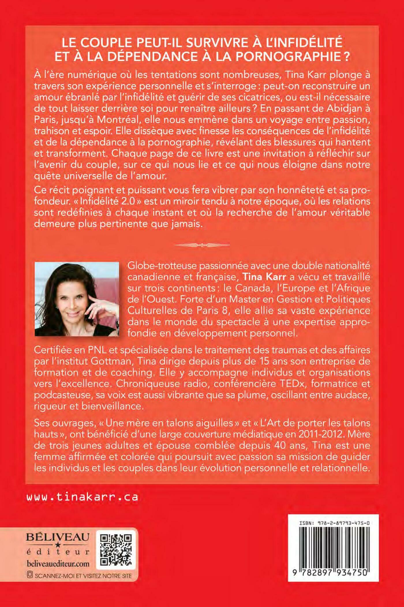 À l’ère numérique où les tentations sont nombreuses, Tina Karr plonge à travers sonexpérience personnelle et s’interroge : peut-on reconstruire un amour ébranlé parl’infidélité et guérir de ses cicatrices, ou est-il nécessaire de tout laisser derrière soipour renaître ailleurs ? En passant de Abidjan à Paris, jusqu’à Montréal, elle nousemmène dans un voyage entre passion, trahison et espoir. Elle dissèque avecfinesse les conséquences de l’infidélité et de la dépendance à la pornographie,révélant des blessures qui hantent et transforment. Chaque page de ce livre estune invitation à réfléchir sur l’avenir du couple, sur ce qui nous lie et ce qui nouséloigne dans notre quête universelle de l’amour.Ce récit poignant et puissant vous fera vibrer par son honnêteté et sa profondeur.« Infidélité 2.0 » est un miroir tendu à notre époque, où les relations sont redéfinies àchaque instant et où la recherche de l’amour véritable demeure plus pertinenteque jamais.
