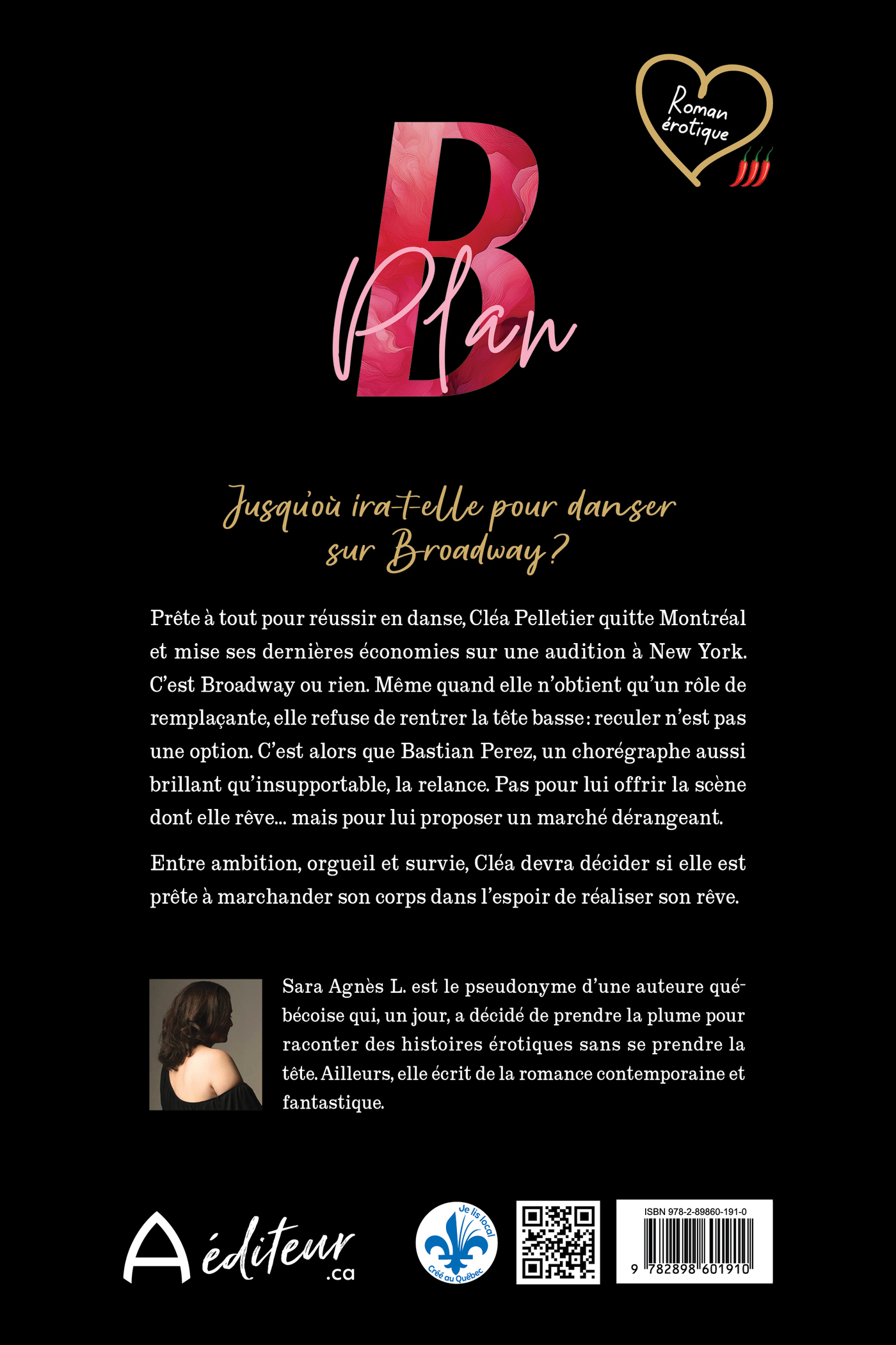 Prête à tout pour réussir en danse, Cléa Pelletier quitte Montréal et mise ses dernières économies sur une audition à New York. C’est Broadway ou rien. Même quand elle n’obtient qu’un rôle de remplaçante, elle refuse de rentrer la tête basse : reculer n’est pas une option. C’est alors que Bastian Perez, un chorégraphe aussi brillant qu’insupportable, la relance. Pas pour lui offrir la scène dont elle rêve… mais pour lui proposer un marché dérangeant. Entre ambition, orgueil et survie, Cléa devra décider si elle est prête à marchander son corps dans l’espoir de réaliser son rêve.