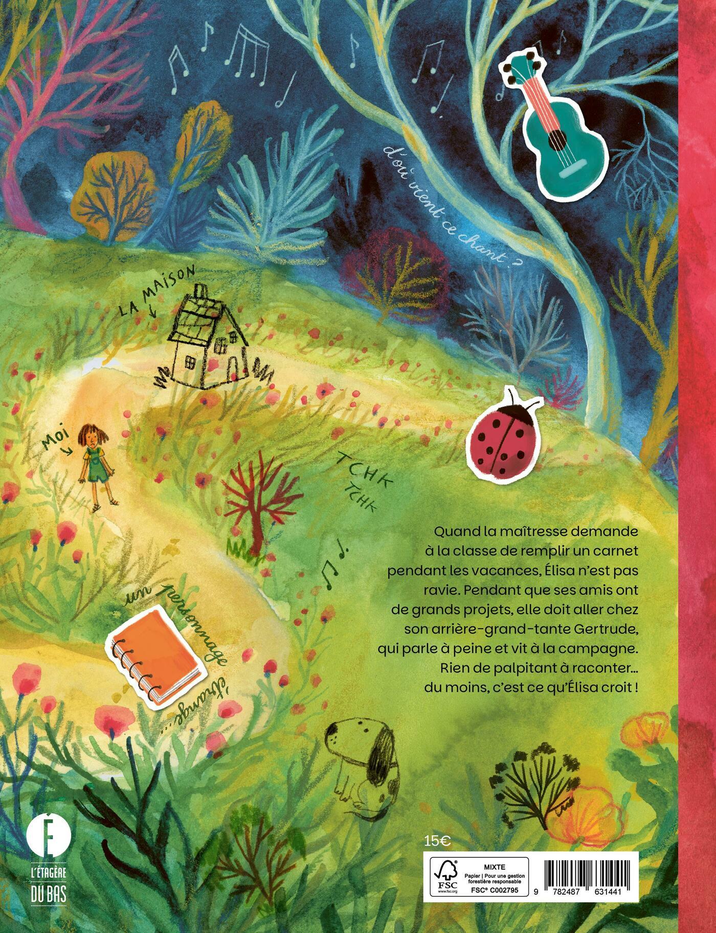 Quand la maîtresse demande à la classe de remplir un carnet pendant les vacances, Élisa n’est pas ravie. Pendant que ses amis ont de grands projets, elle doit aller chez son arrière-grand-tante Gertrude, qui parle à peine et vit à la campagne. Rien de palpitant à raconter... du moins, c’est ce qu’Élisa croit !