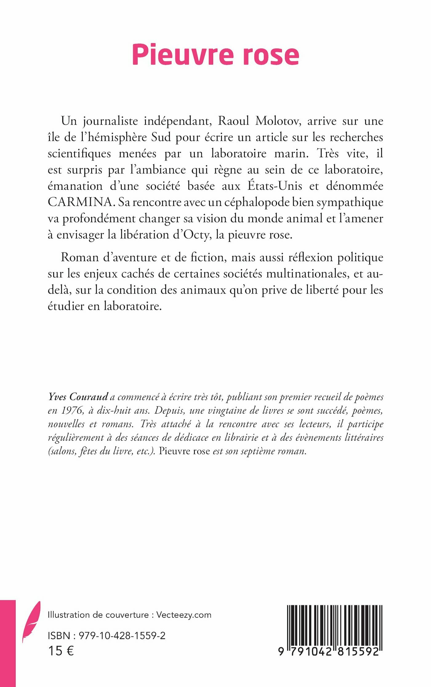 Un journaliste indépendant, Raoul Molotov, arrive sur une île de l’hémisphère Sud pour écrire un article sur les recherches scientifiques menées par un laboratoire marin. Très vite, il est surpris par l’ambiance qui règne au sein de ce laboratoire, émanation d’une société basée aux États-Unis et dénommée CARMINA. Sa rencontre avec un céphalopode bien sympathique va profondément changer sa vision du monde animal et l’amener à envisager la libération d’Octy, la pieuvre rose.