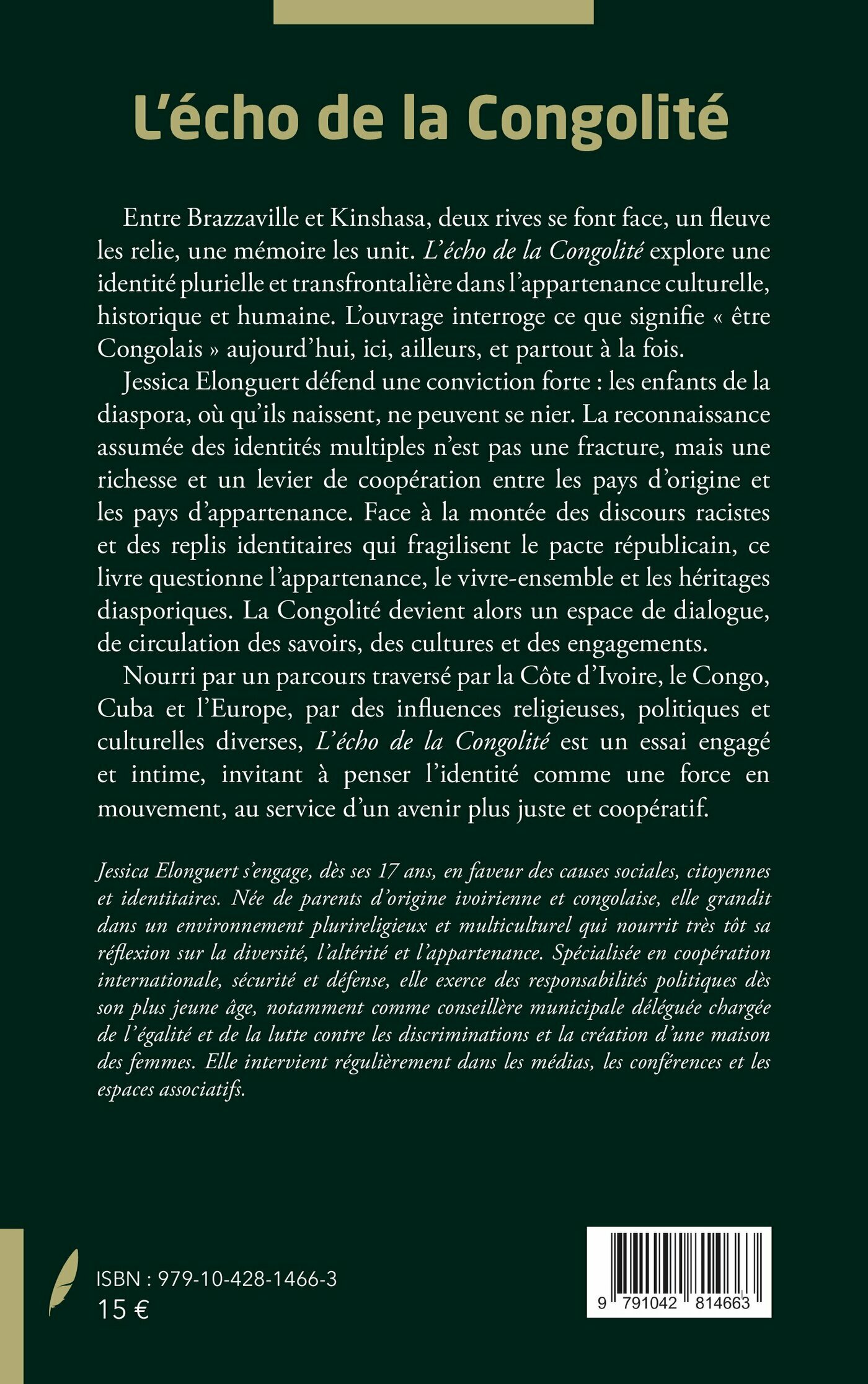 Jessica Elonguert défend une conviction forte : les enfants de la diaspora, où qu’ils naissent, ne peuvent se nier. La reconnaissance assumée des identités multiples n’est pas une fracture, mais une richesse et un levier de coopération entre les pays d’origine et les pays d’appartenance. Face à la montée des discours racistes et des replis identitaires qui fragilisent le pacte républicain, ce livre questionne l’appartenance, le vivre-ensemble et les héritages diasporiques. La Congolité devient alors un espace de dialogue, de circulation des savoirs, des cultures et des engagements.