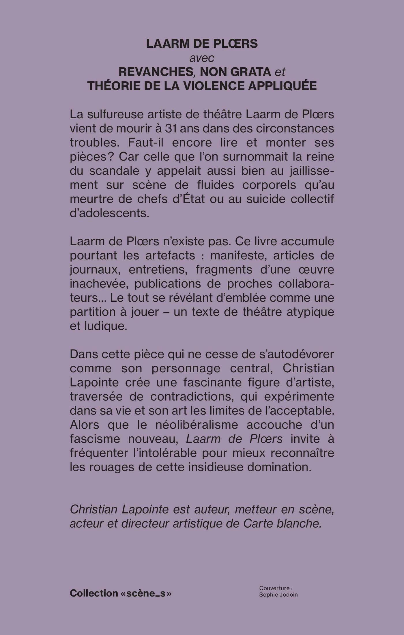 Olivier Choinière, Sarah Berthiaume, Fabien Cloutier, Anne-Marie Olivier, Michel Marc Bouchard, Dany Boudreault, Dominic Champagne, Guillaume Corbeil, Stéphane Crête, Sébastien David, Rébecca Déraspe, Philippe Ducros, Carole Fréchette, Jean-Claude Germain, Guillaume Girard, Jean-Michel Girouard, Christian Lapointe, Justin Laramée, Marie-Hélène Larose-Truchon, Annick Lefebvre, Catherine Léger, Jean-Frédéric Messier, David Paquet, Camille Roy, Larry Tremblay, Lise Vaillancourt