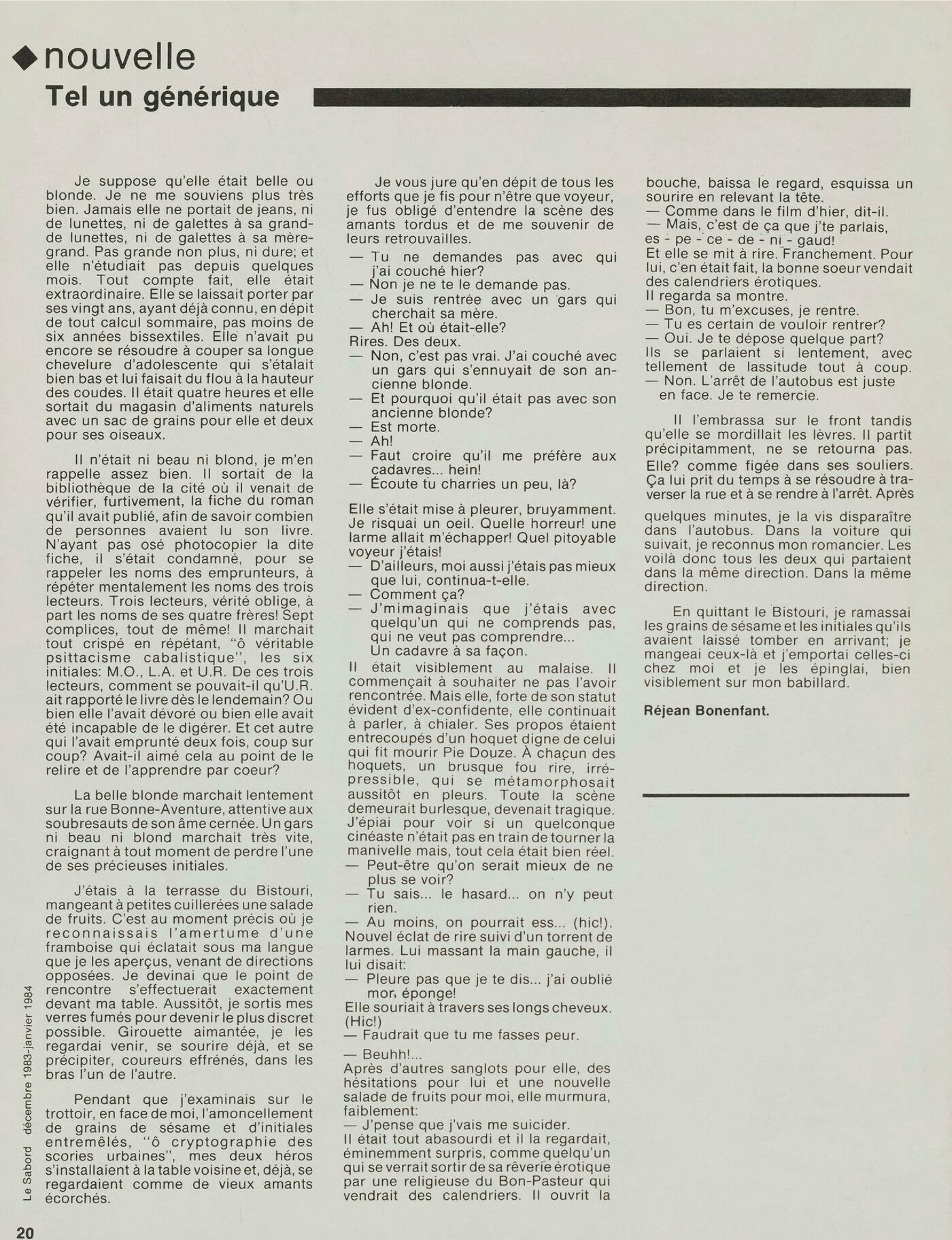 Pierre Chatillon, Aline Gélinas, Jean Laprise, Guy Marchamps, Michel Audy, Daniel Brûlé, Pierre Corbeil, Michel Dallaire, Gilles Desrochers, Gilles Devault, Yvon Linteau, René Lord, Lévis Martin, Liane Montplaisir, Bernard Pozier, Huguette Rousseau, Percy Turcotte