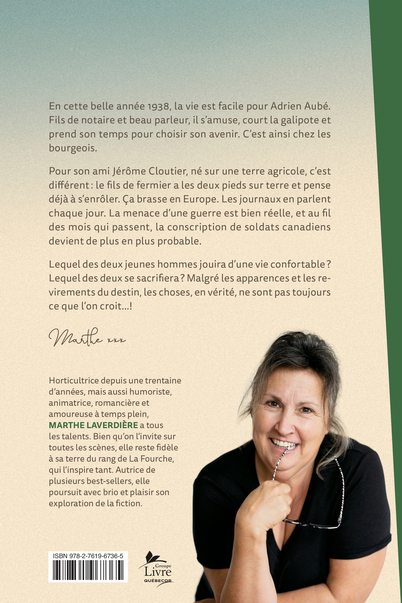 Pour son ami Jérôme Cloutier, né sur une terre agricole, c’est différent: le fils de fermier a les deux pieds sur terre et pense déjà à s’enrôler. Ça brasse en Europe. Les journaux en parlent chaque jour. La menace d’une guerre est bien réelle, et au fil des mois qui passent, la conscription de soldats canadiens devient de plus en plus probable.