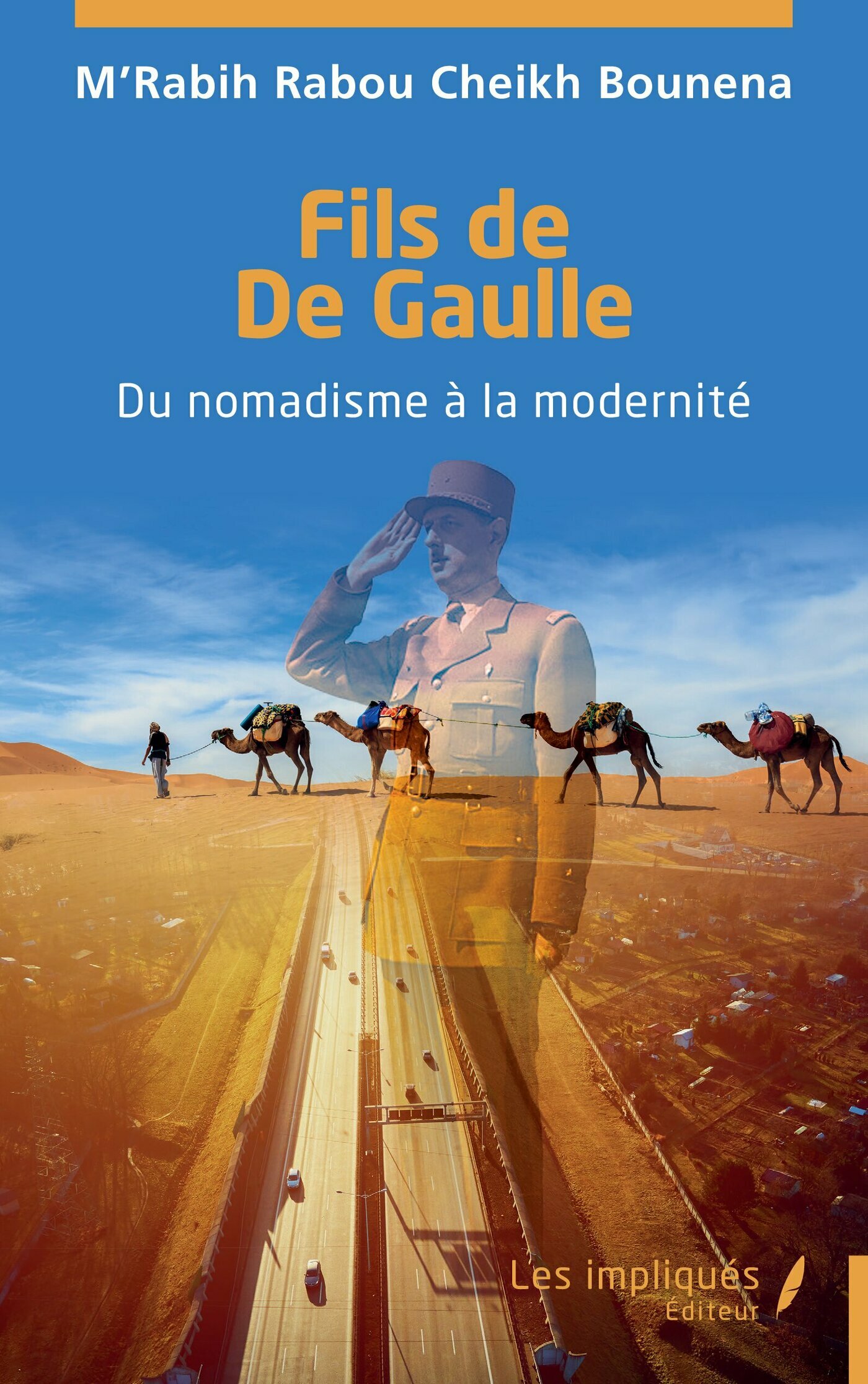 – observateur et parfois acteur – l’évolution de son pays sur plus d’un demi-siècle. La couverture symbolise ce passage du nomadisme, illustré par la caravane, à la modernité incarnée par le train minéralier Zouerate-Nouadhibou, avec comme trait d’union l’enseignement de l’école française où apparaît Charles de Gaulle dans une classe primaire à Atar.