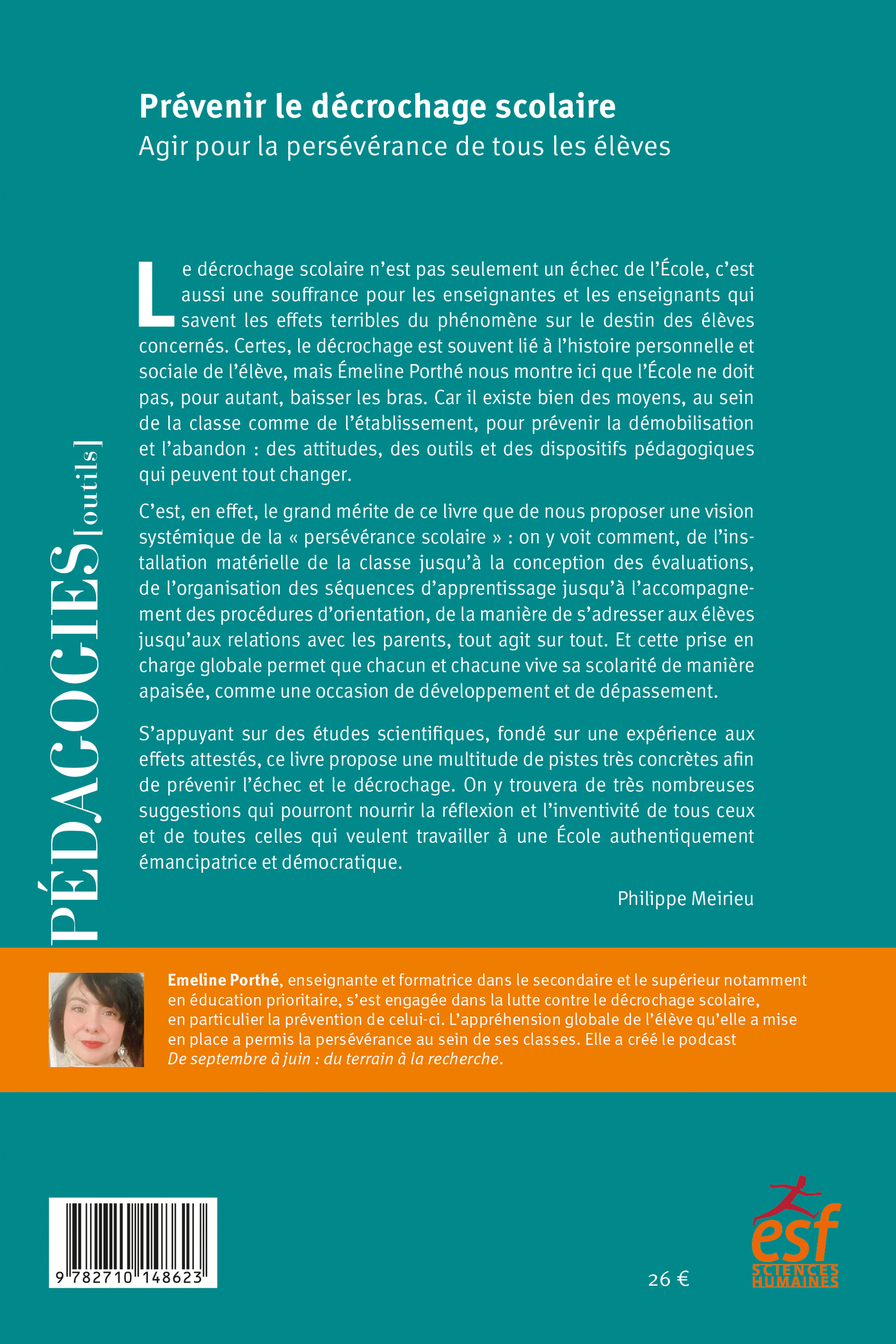 Apprendre aux élèves à coopérer, redonner du sens aux apprentissages, améliorer le climat scolaire et mettre en place une relation privilégiée et de confiance entre élèves et professeurs, travailler main dans la main avec les parents d’élèves, tel est le pari de la prise en charge globale qui invite à coconstruire avec les élèves un fonctionnement qui convienne à tous. Émeline Porthé propose également de repenser l’évaluation et les conseils de classe, souvent vécus comme stressants, afin que les élèves puissent se fixer, en concertation avec l’équipe enseignante, des objectifs atteignables et qu’ils voient leurs progrès reconnus et valorisés au fil de l’année.
